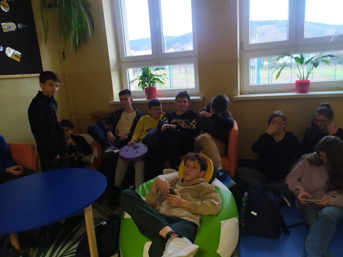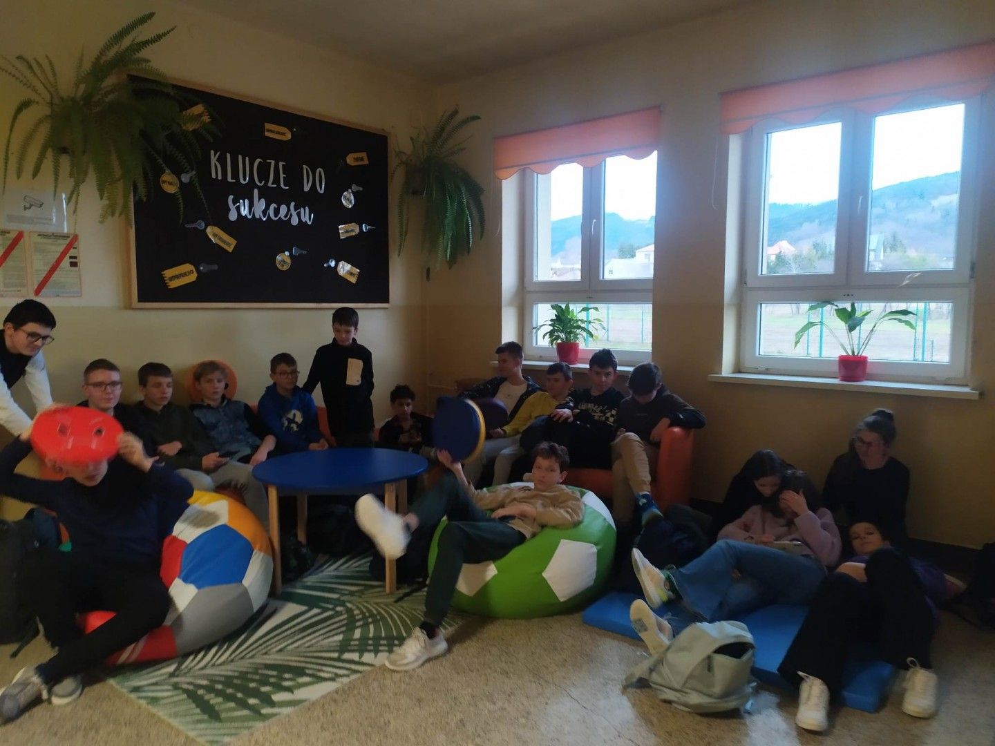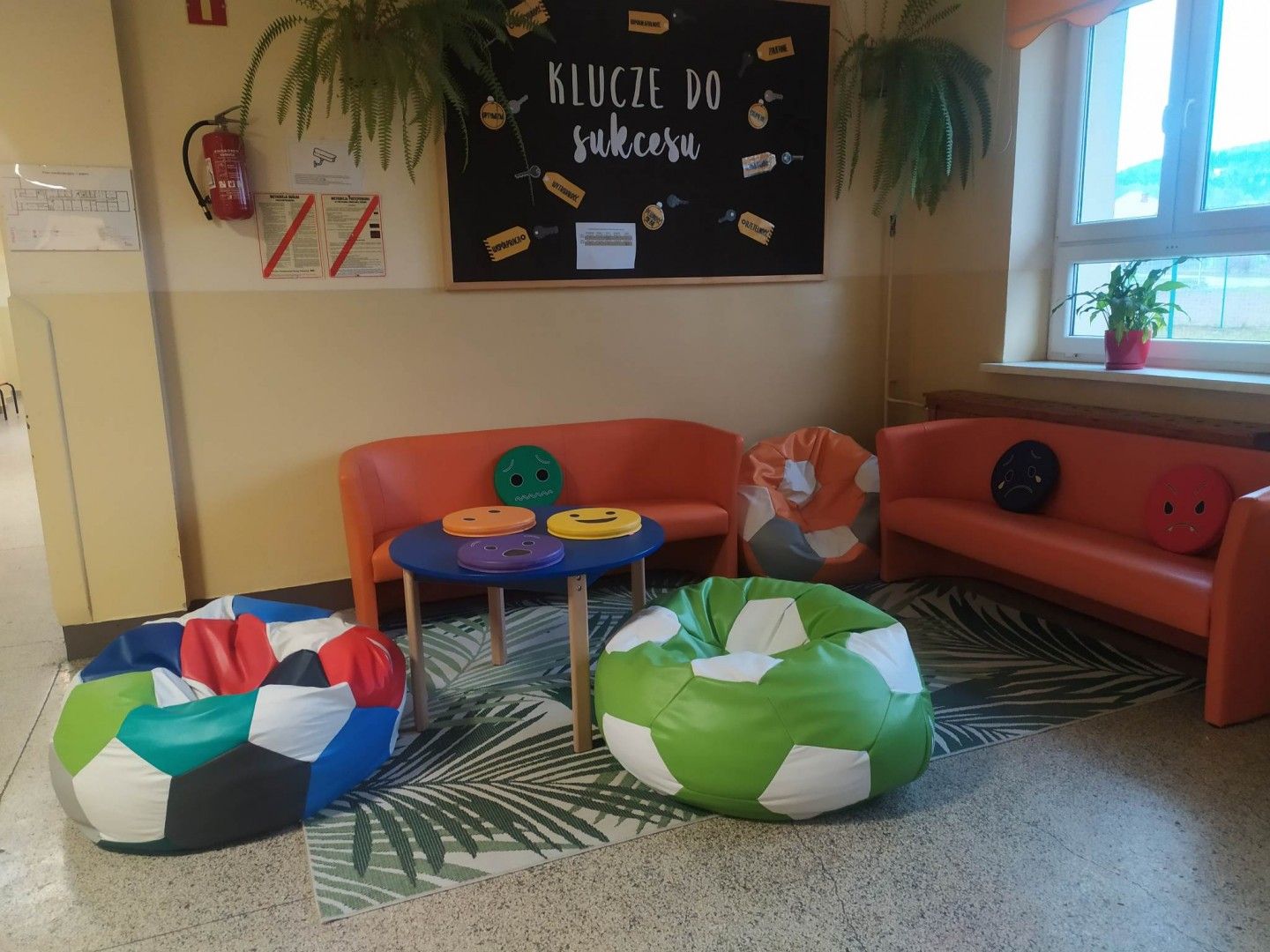 Uczniowie z wielką radością korzystają z kącika relaksacyjnego, cieszy się on wielkim zainteresowaniem i już liczą na to, że w przyszłości będą mogli zgłaszać kolejne propozycje.