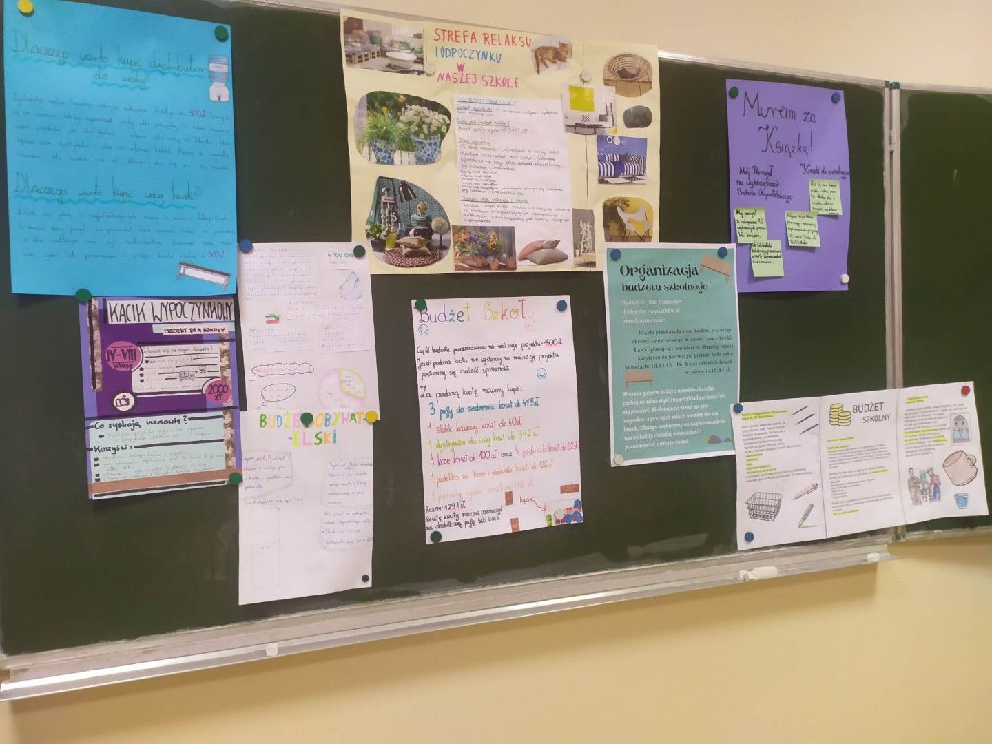 Grupy projektowe opracowywały prezentacje przedstawiające wiedzę o budżecie. Tworzyły plakaty z propozycjami wykorzystania środków w ramach szkolnego budżetu obywatelskiego. Przeprowadziły kampanię reklamową tworząc kącik wystawowy własnych pomysłów, o czym informowali na szkolnej stronie Facebookowej a na koniec głosowanie na najciekawszą propozycję.