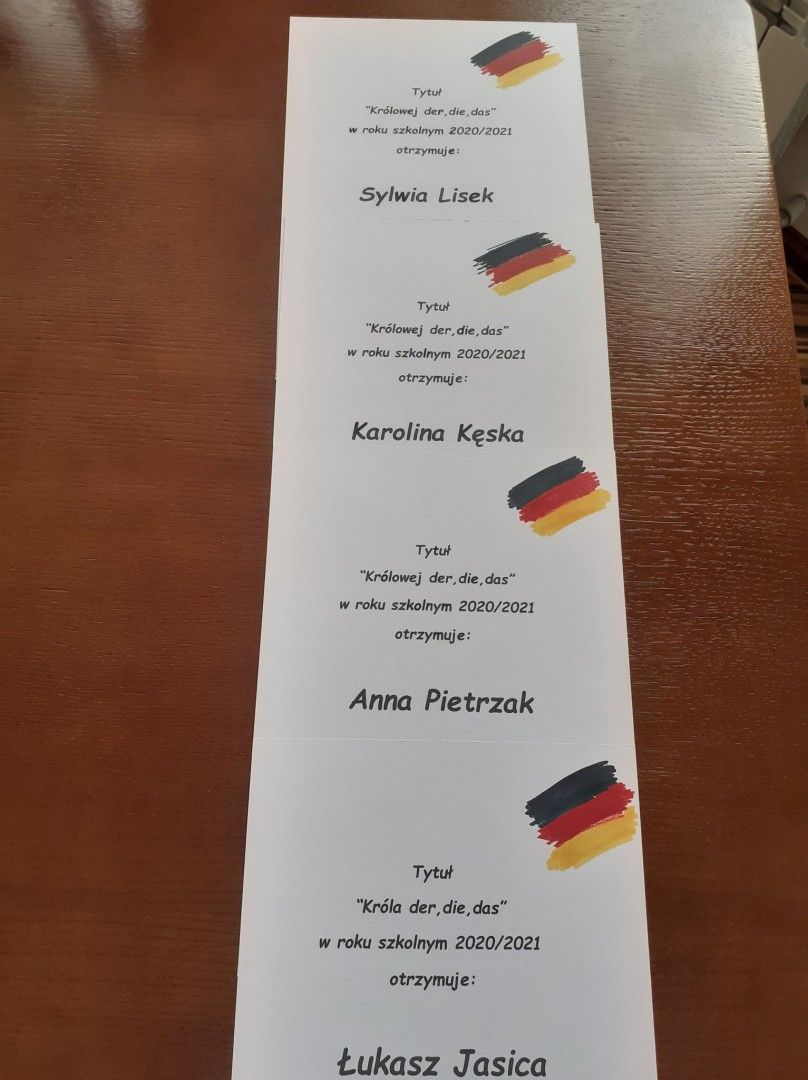 Dziękuję wszystkim uczniom za udział w konkursie, a zwycięzcom gratuluję zdobycia nagród i tytułu KRÓLA I KRÓLOWEJ DER, DIE, DAS.