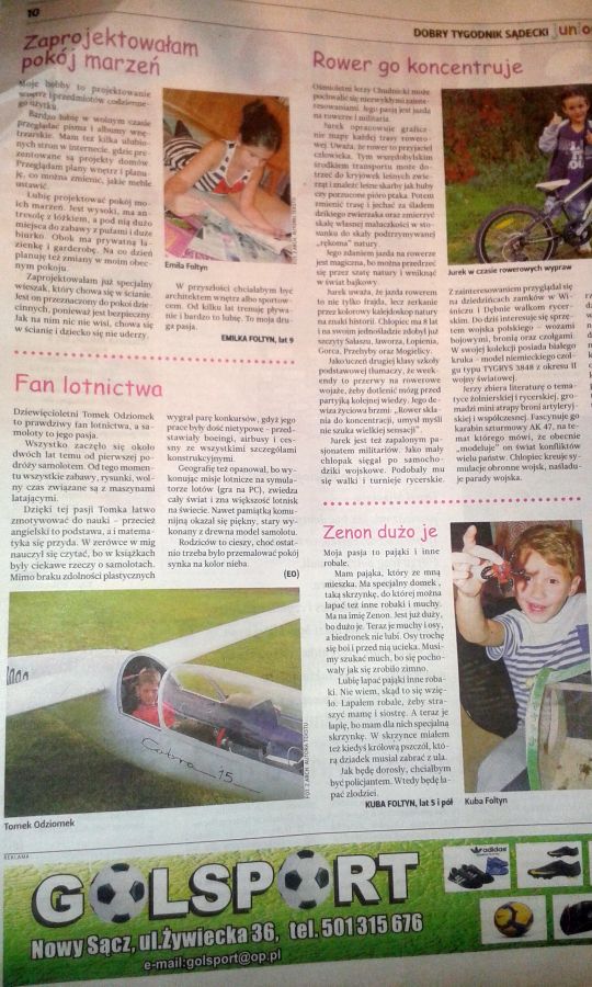 „Fan lotnictwa” – o Tomku Odziomku z kl.3
