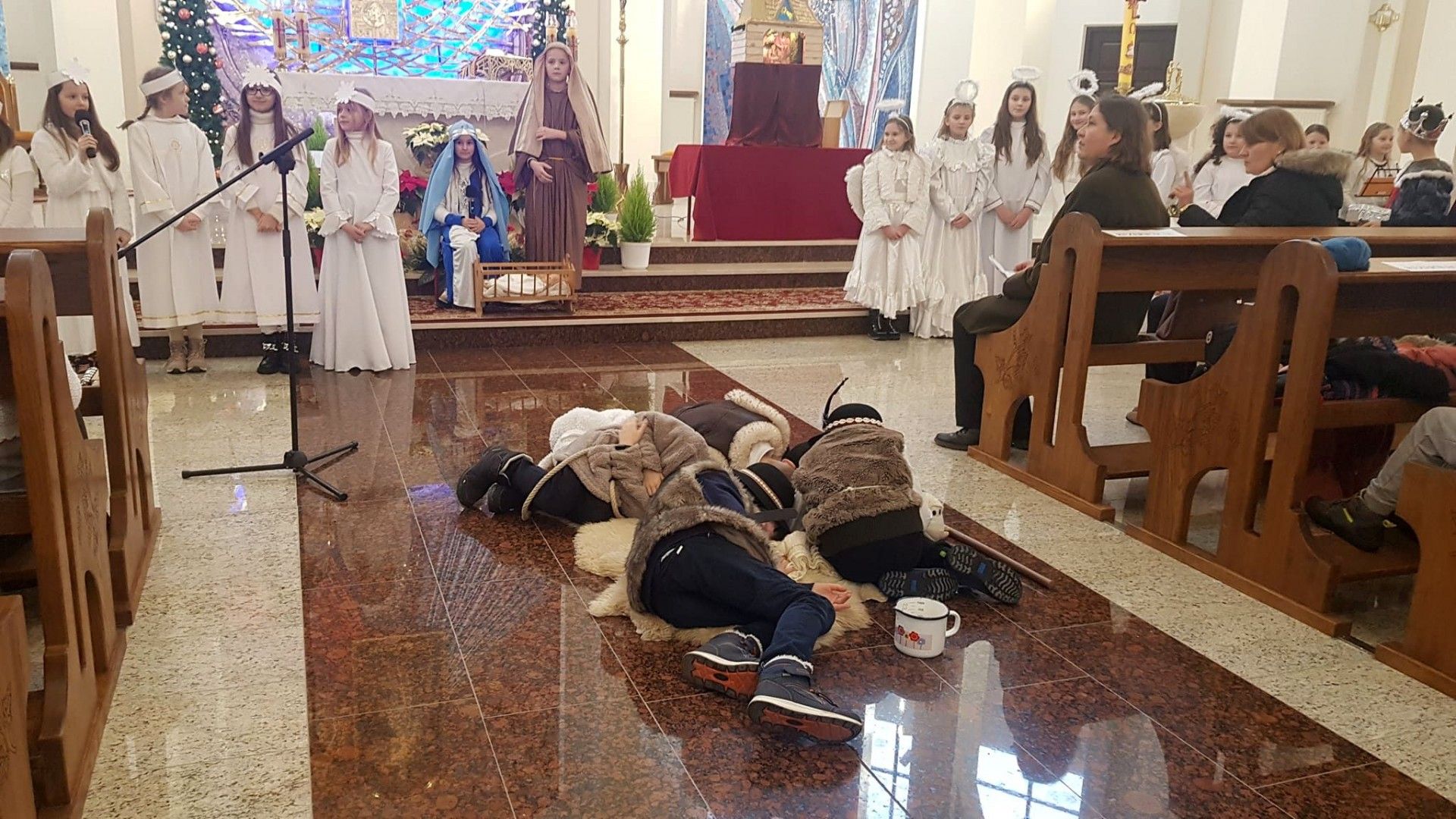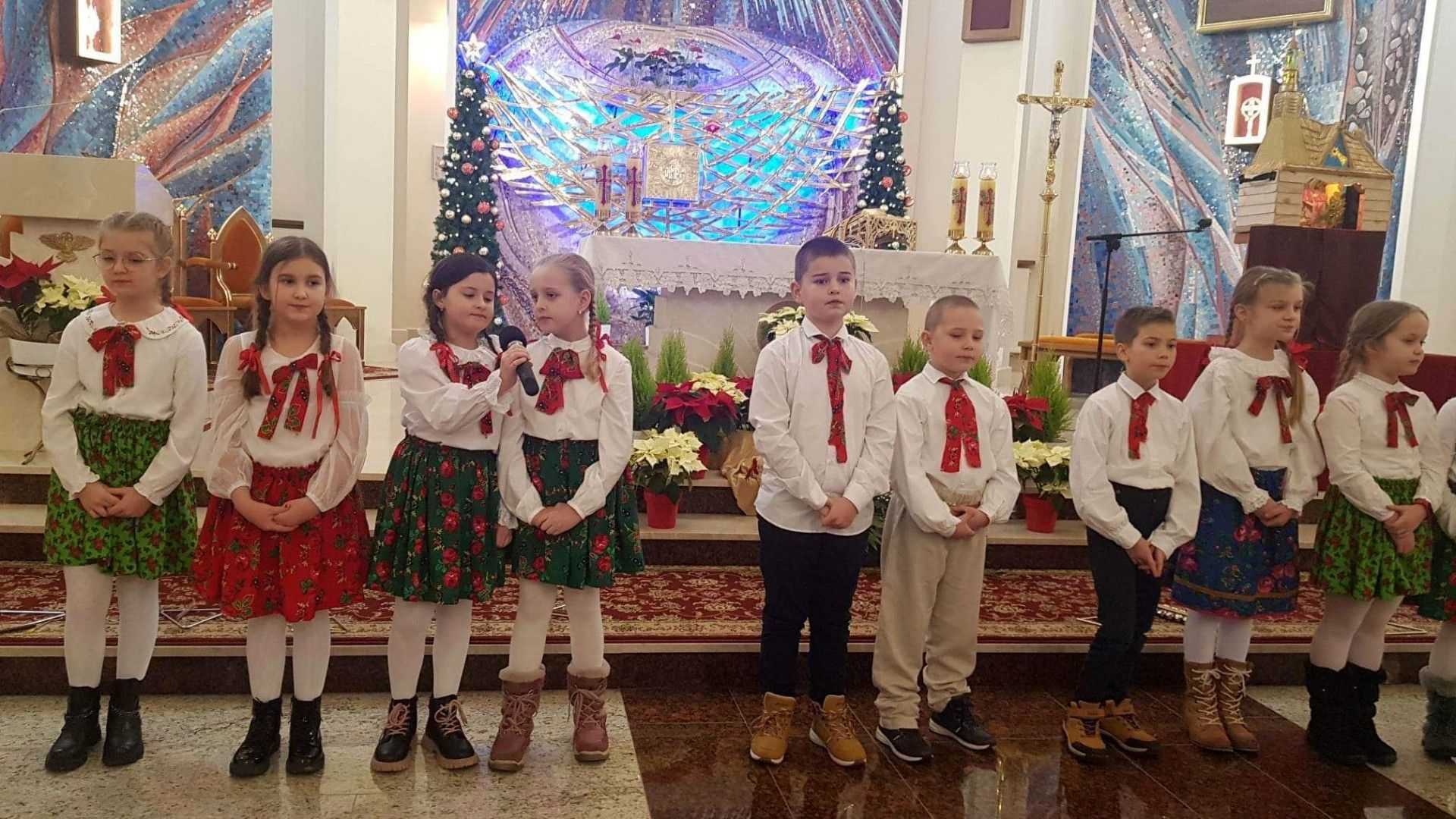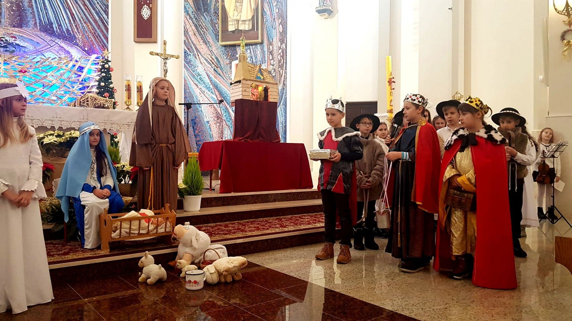 Wszyscy wzięli udział we Mszy św. pod przewodnictwem księdza proboszcza Wojciecha Maślanki. Po nabożeństwie uświetnionym przez chór szkolny, który pod opieką mgr Marzeny Kasprzyk Dudek zaprezentował tradycyjne pastorałki, uczniowie z klas 3a i 3 b pod opieką mgr Haliny Jurowicz i mgr Małgorzaty Król przedstawili oryginalne jasełka. Trzecioklasiści wykazali się zarówno talentem aktorskim, wokalnym, jak i muzycznym, grając na skrzypcach i innych instrumentach. Po pięknym występie dzieci przygotowane przez panie mgr Ewę Tomaszek i Kazimierę Matyasik złożyły gościom staropolskie życzenia, zaśpiewały kolędę i zaprezentowały tradycyjną szopkę. Po wzruszającym występie młodych artystów zaproszeni goście udali się na świąteczne spotkanie, które odbyło się w naszej szkole. Była to wspaniała okazja do wspólnego kolędowania, wspomnień i spotkania z nauczycielami, którzy stworzyli tę tradycję.