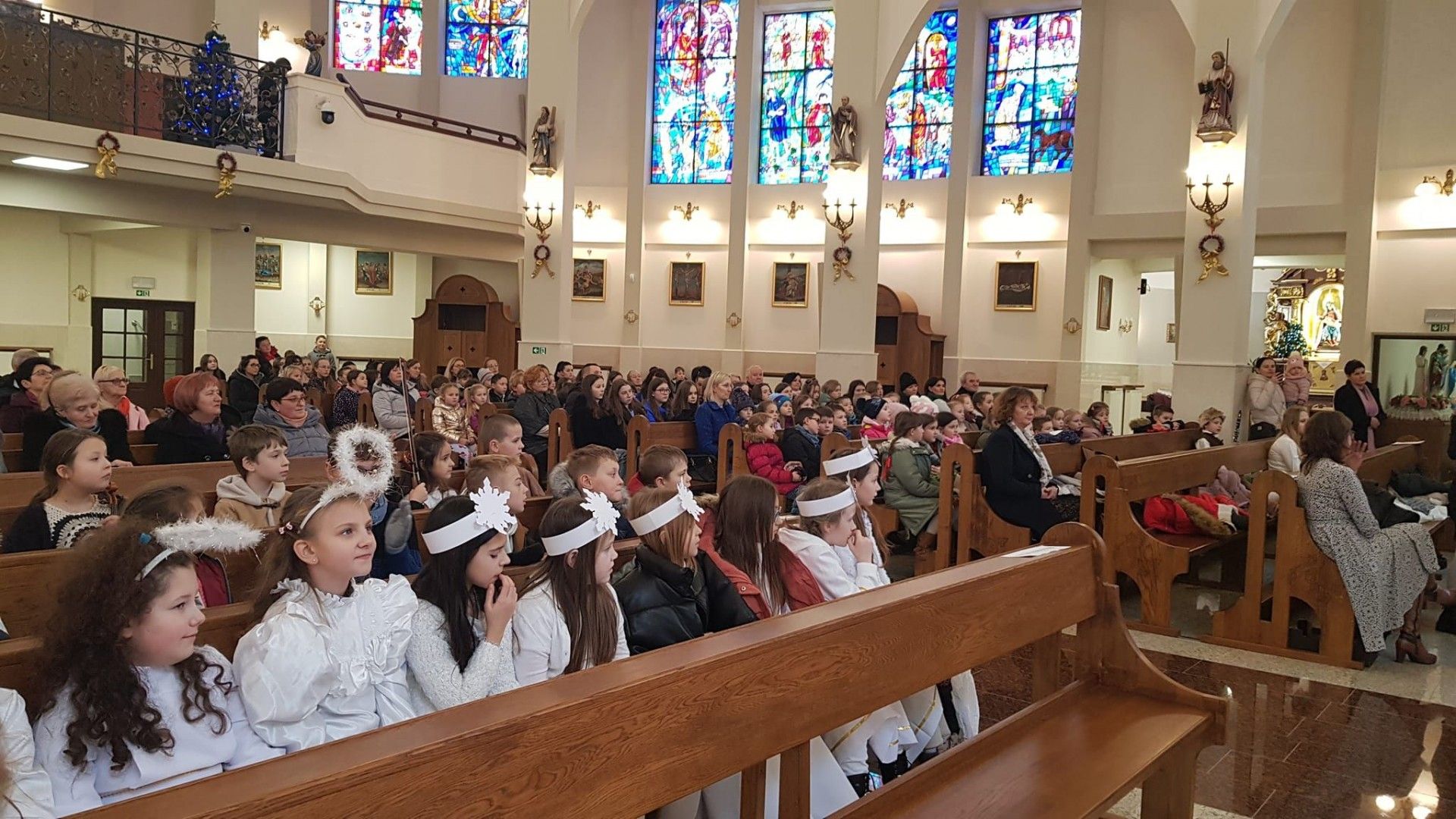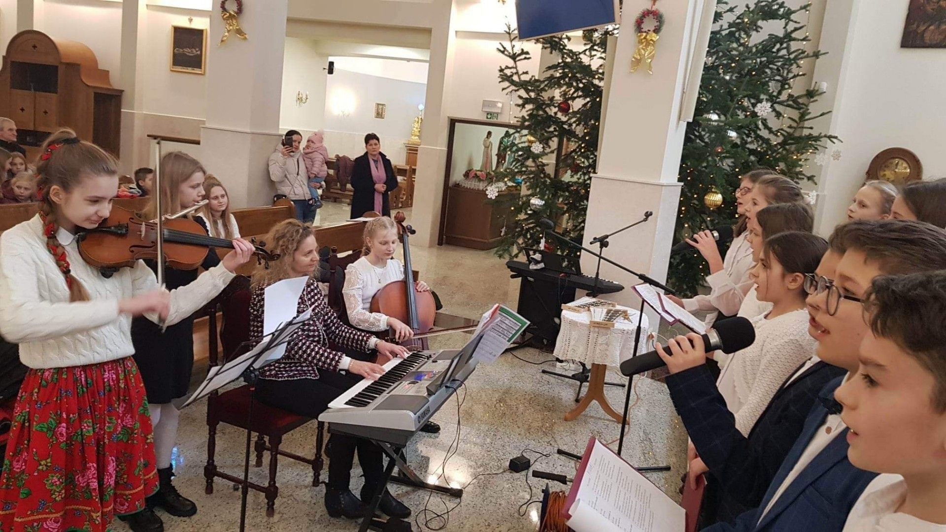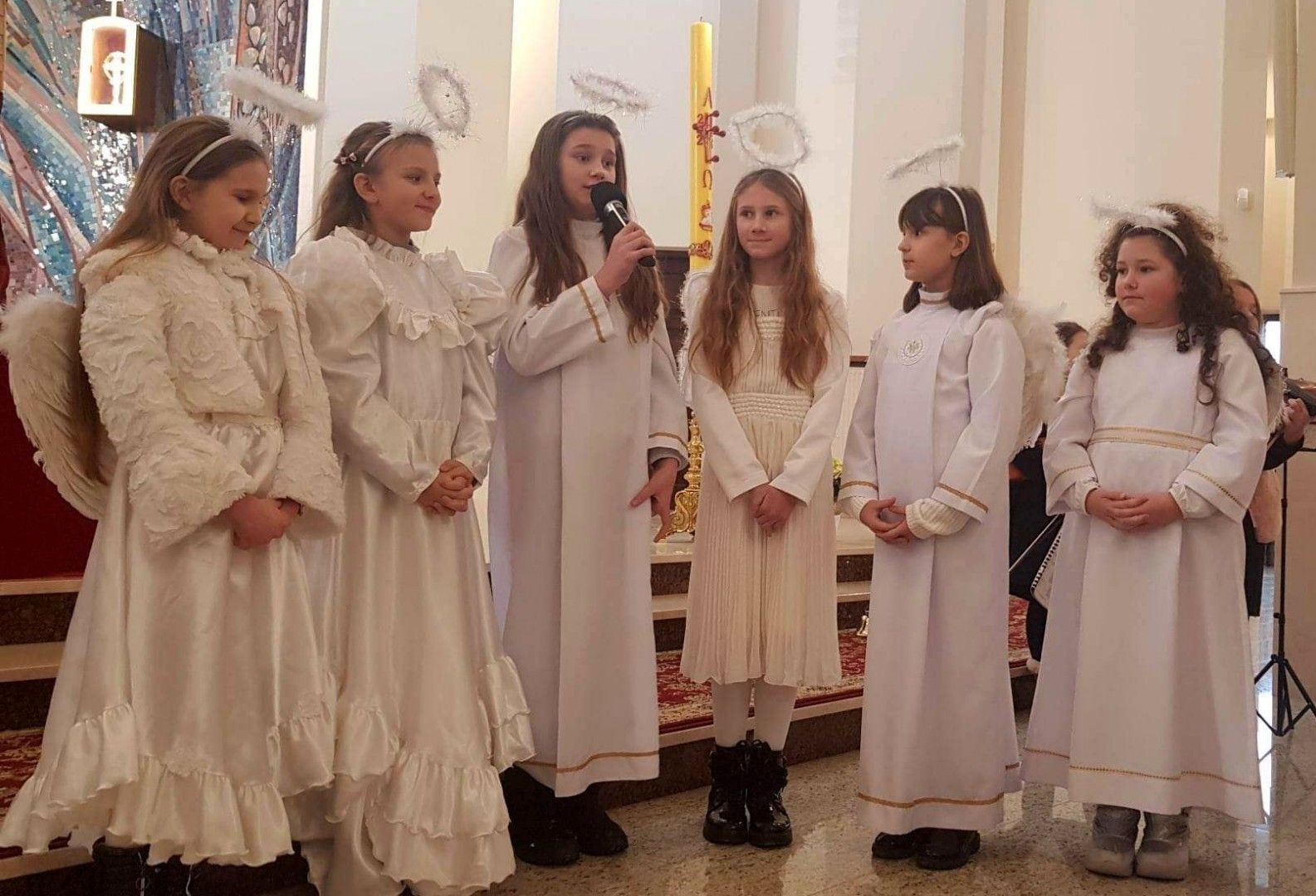 Wszyscy wzięli udział we Mszy św. pod przewodnictwem księdza proboszcza Wojciecha Maślanki. Po nabożeństwie uświetnionym przez chór szkolny, który pod opieką mgr Marzeny Kasprzyk Dudek zaprezentował tradycyjne pastorałki, uczniowie z klas 3a i 3 b pod opieką mgr Haliny Jurowicz i mgr Małgorzaty Król przedstawili oryginalne jasełka. Trzecioklasiści wykazali się zarówno talentem aktorskim, wokalnym, jak i muzycznym, grając na skrzypcach i innych instrumentach. Po pięknym występie dzieci przygotowane przez panie mgr Ewę Tomaszek i Kazimierę Matyasik złożyły gościom staropolskie życzenia, zaśpiewały kolędę i zaprezentowały tradycyjną szopkę. Po wzruszającym występie młodych artystów zaproszeni goście udali się na świąteczne spotkanie, które odbyło się w naszej szkole. Była to wspaniała okazja do wspólnego kolędowania, wspomnień i spotkania z nauczycielami, którzy stworzyli tę tradycję.
