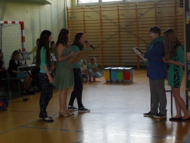 W apelu uczniowie mieli także możliwość udziału w pokazie mody ekologicznej, w którym zaprezentowali stroje ekologiczne. Zaprezentowane stroje były wykonane według własnych projektów z elementów pochodzących z recyklingu. Na zakończenie Pan Dyrektor wręczył nagrody i dyplomy dla najlepszych uczniów biorących udział w konkursach.