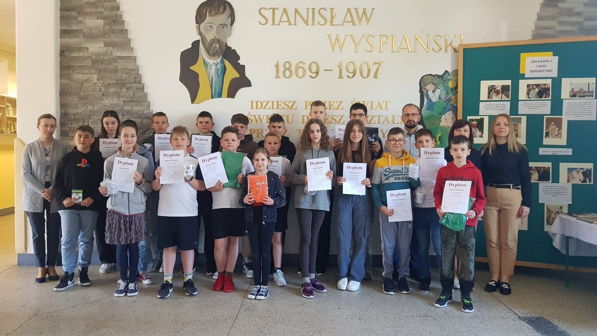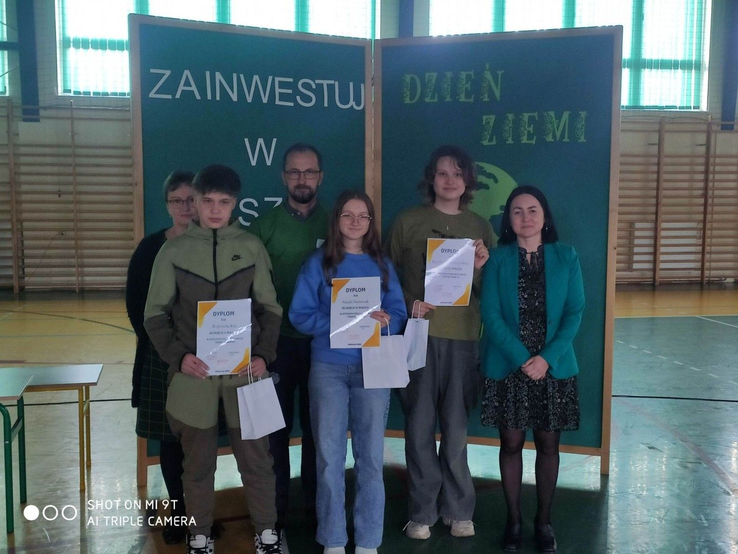 Nagrodzeni w konkursie "Rozwiąż łamigłówkę": Beata Szewczyk, kl. IIIb, Anna Gucia kl. VIb, Przemysław Abram kl. VIII