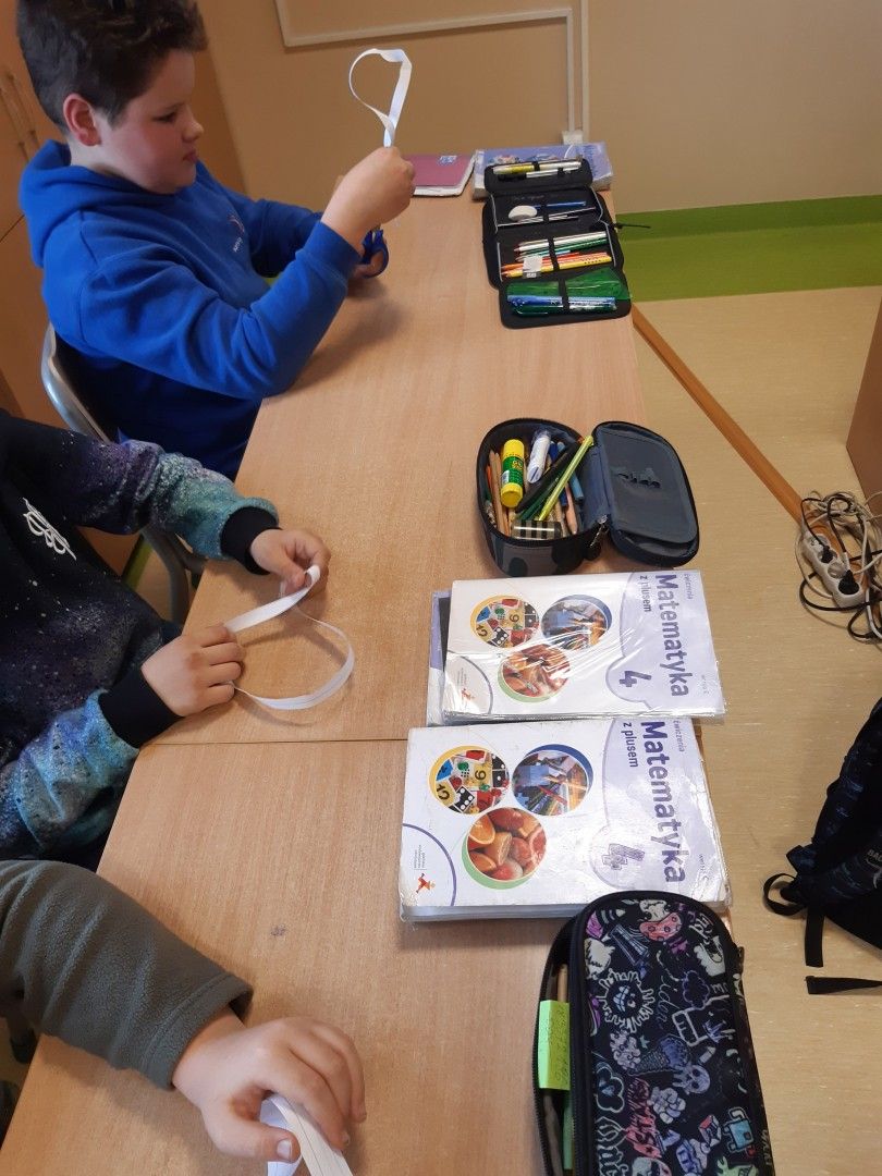 Natomiast starsi uczniowie, z klas IV-VIII, na lekcjach biologii odkrywali tajemnice zmysłów jak również prowadzili obserwacje mikroskopowe preparatów trwałych i świeżych. Na matematyce poznali szczególną powierzchnię jednostronną – wstęgę Mӧbiusa, którą następnie wykonali samodzielnie. W dalszej części zajęć eksperymentowali i obserwowali różne własności wstęgi. Natomiast na fizyce uczniowie klasy siódmej przeprowadzali doświadczenie związane ze zjawiskiem bezwładności. Bezwładność jest to cecha wynikająca z pierwszej zasady dynamiki powodująca, że ciało chce zachować swój stan ruchu. Bezwładność ciała została pokazana za pomocą szklanki i butelki, na których została położona kartka papieru, a na niej moneta. Taki eksperyment nazywany jest „Leniwą monetą”.