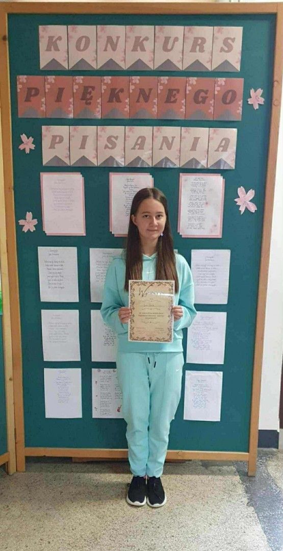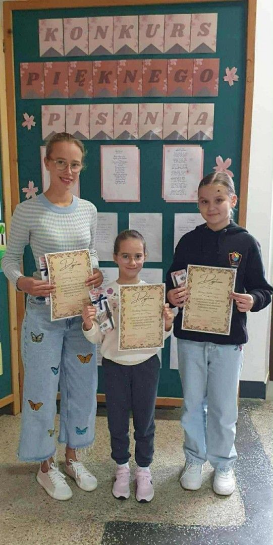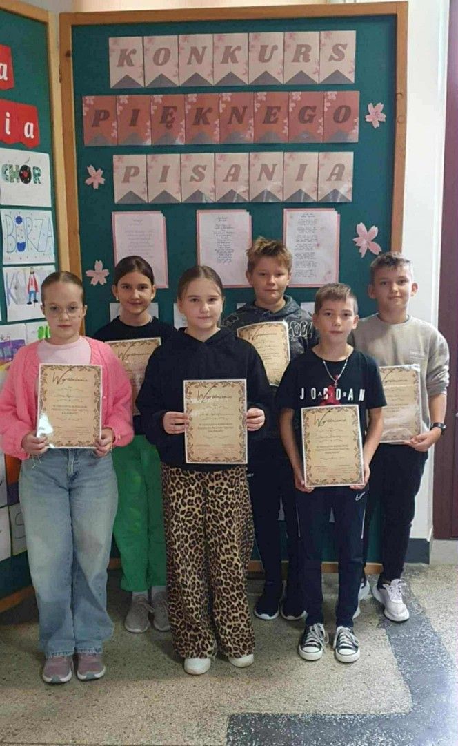 2. Konkurs pięknego pisania Mistrz Kaligrafii z wystawą prac i nagrodami. Otrzymałyśmy 96 prac. Wybór najlepszych z nich był niezwykle trudny, ponieważ wszyscy uczniowie bardzo starannie, a wręcz po mistrzowsku przepisali konkursowy tekst. O zwycięstwie decydowały dosłownie szczegóły. Ostatecznie tytuł Mistrza Kaligrafii w roku szkolnym 2025/2026 otrzymali:
