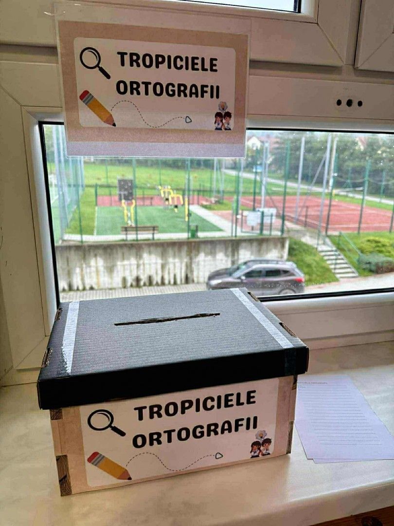 3. Zabawa edukacyjna Tropiciele ortografii. Zadaniem uczniów oraz uczennic było znalezienie wszystkich 20 słówek rozmieszczonych po całej szkole, poprawne zapisanie wyrazów na kartce i wrzucenie jej do skrzynki, która znajdowała się na I. piętrze przy klatce schodowej. Aktywność wzbudziła ogromne zainteresowanie. Podczas przerw obserwowałyśmy, jak z wielkim zaangażowaniem wszyscy podeszli do tego zadania. Bardzo nas to cieszy. Łącznie otrzymałyśmy 135 prac.