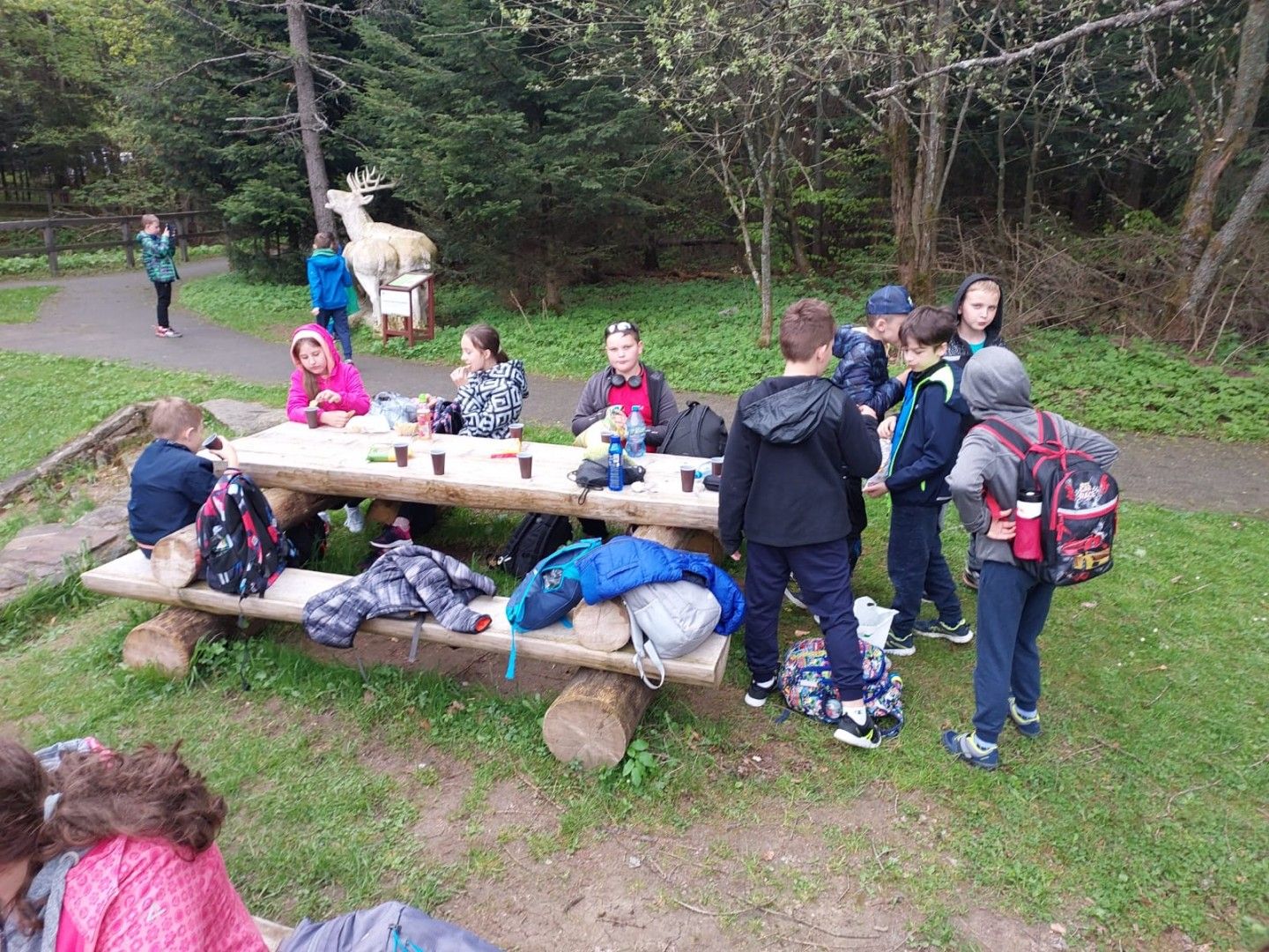 Po krótkiej przerwie na drugie śniadanie odwiedziliśmy Centrum Edukacji Przyrodniczej Tatrzańskiego Parku Narodowego. Podczas spaceru edukacyjnego czwartoklasiści uzupełnili swoją wiedzę o to, jak zachowywać się na szlakach zanim na nie wejdziemy, jak nie stanowić zagrożenia dla ekosystemu panującego w Tatrach. Zajrzeli także do jaskini. Jednak najbardziej wyczekiwanym momentem wycieczki były Chochołowskie Termy. Jedni uczniowie sprawdzali swoje umiejętności pływackie, a inni je nabywali. Radości i uśmiechów było mnóstwo.