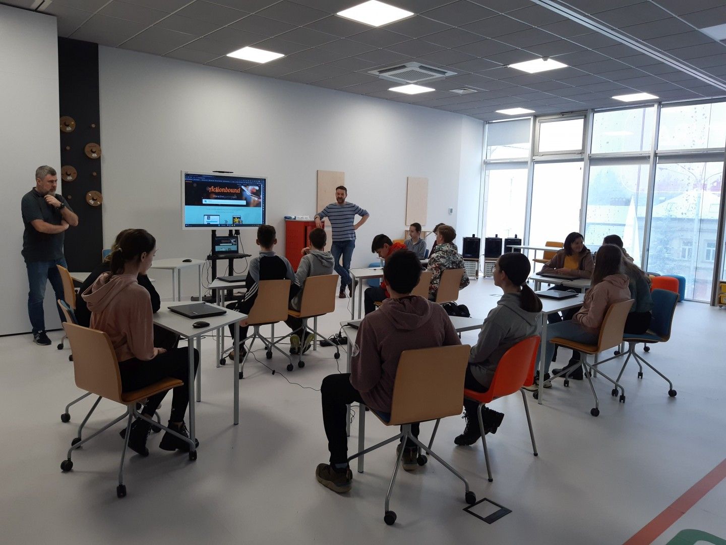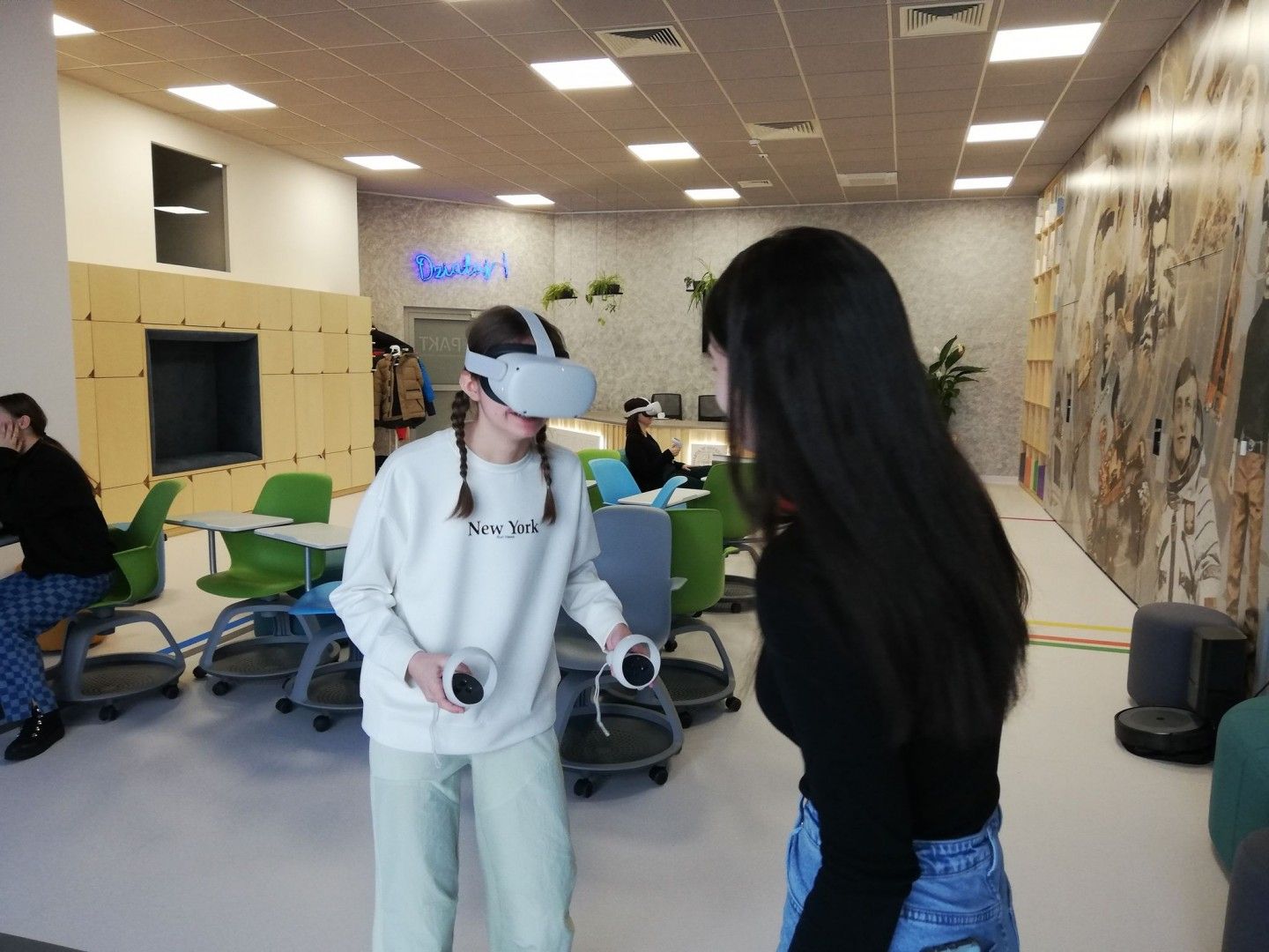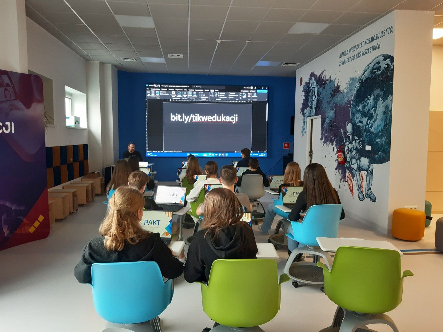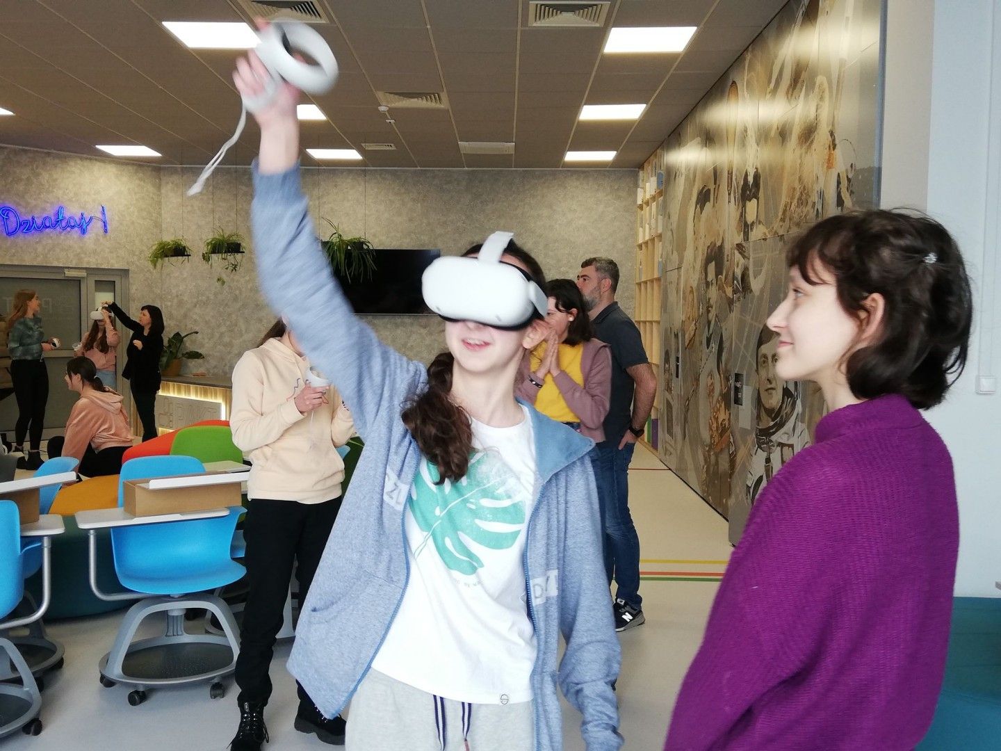 Uczniowie w nowoczesnej pracowni korzystali z kilku stref - ze strefy programowania i kodowania oraz strefy obrazu i dźwięku. Uczestnicy wycieczki rozwiązywali zadania w wirtualnym pokoju zagadek dzięki aplikacji Genially, grali w grę terenową w aplikacji Actionbound, a także tworzyli swoją własną grę o najbliższej okolicy. Uczniowie projektowali ilustracje w programie graficznym, a także występowali przed kamerą, recytowali, śpiewali. Dużej radości i świetnej rozrywki dostarczyły okulary VR, które zanurzyły uczniów w wirtualną rzeczywistość. Dla jednych atrakcją był roller coaster, a dla innych walka bokserska, spotkanie z dinozaurami czy spacer po kanionie. Emocji podczas tej aktywności nie brakowało.
