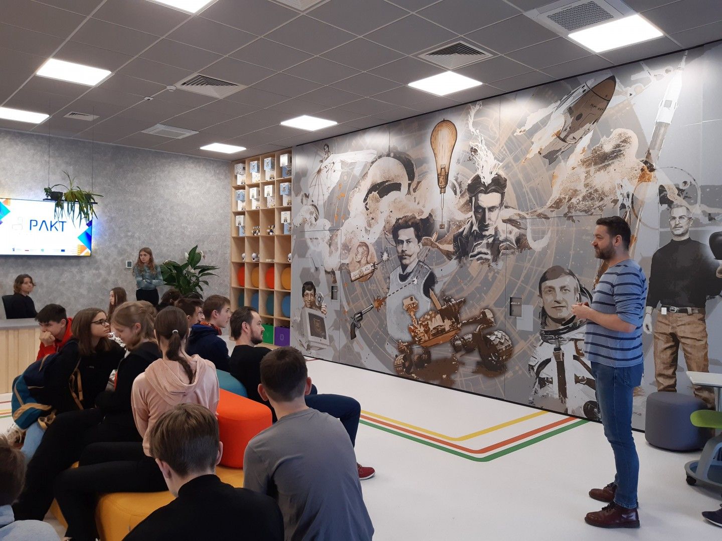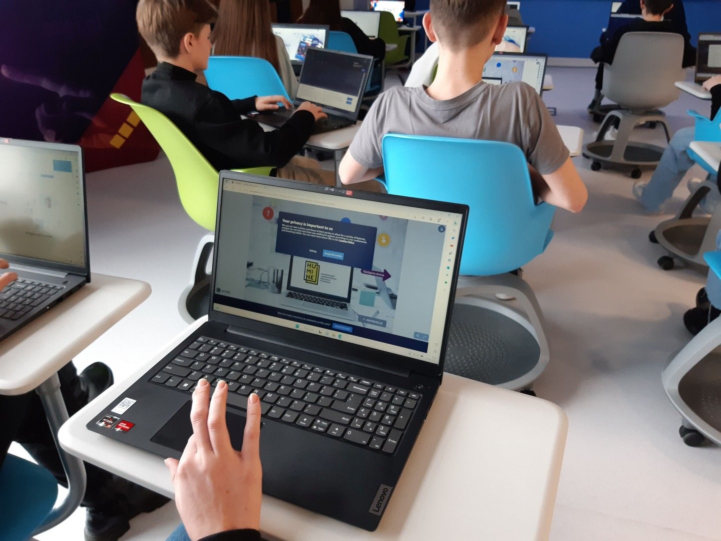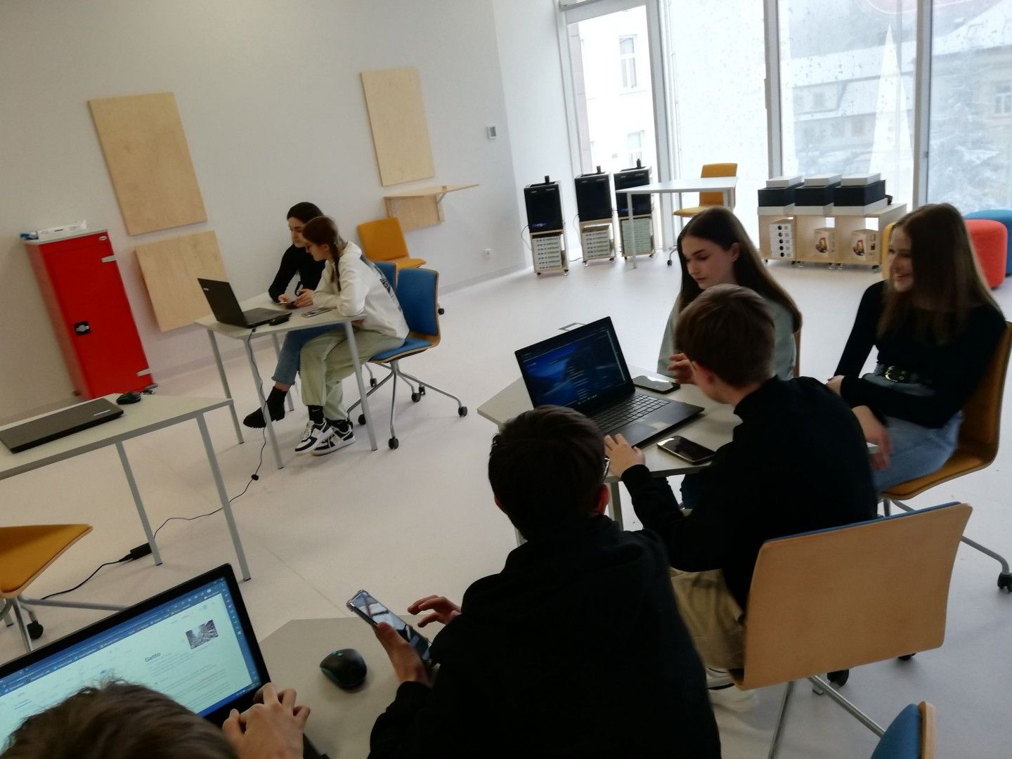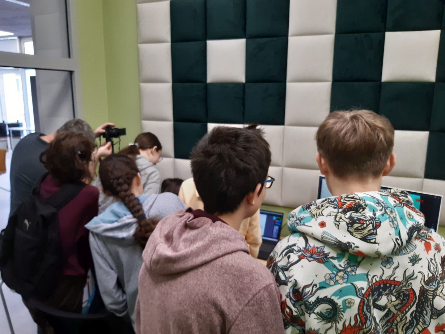 Uczniowie w nowoczesnej pracowni korzystali z kilku stref - ze strefy programowania i kodowania oraz strefy obrazu i dźwięku. Uczestnicy wycieczki rozwiązywali zadania w wirtualnym pokoju zagadek dzięki aplikacji Genially, grali w grę terenową w aplikacji Actionbound, a także tworzyli swoją własną grę o najbliższej okolicy. Uczniowie projektowali ilustracje w programie graficznym, a także występowali przed kamerą, recytowali, śpiewali. Dużej radości i świetnej rozrywki dostarczyły okulary VR, które zanurzyły uczniów w wirtualną rzeczywistość. Dla jednych atrakcją był roller coaster, a dla innych walka bokserska, spotkanie z dinozaurami czy spacer po kanionie. Emocji podczas tej aktywności nie brakowało.