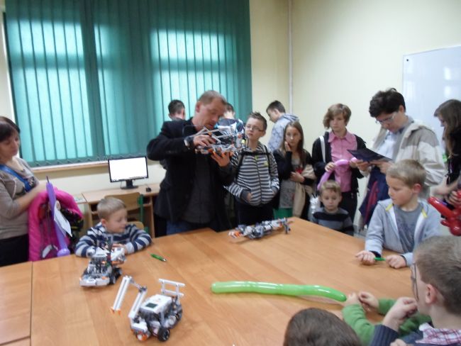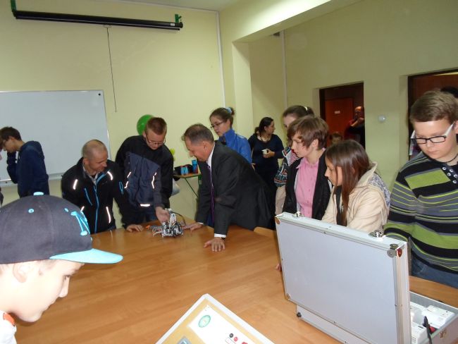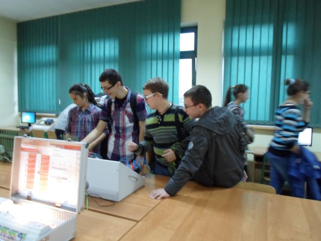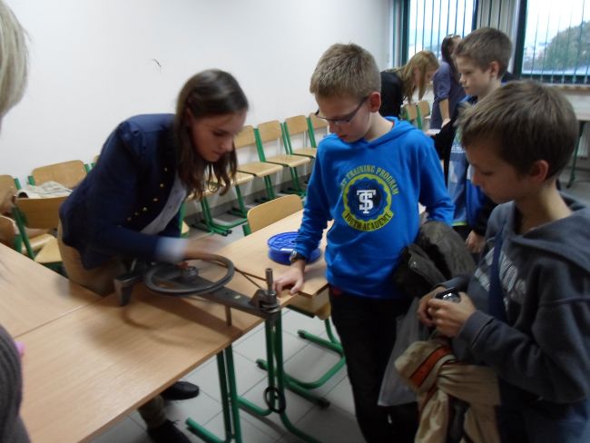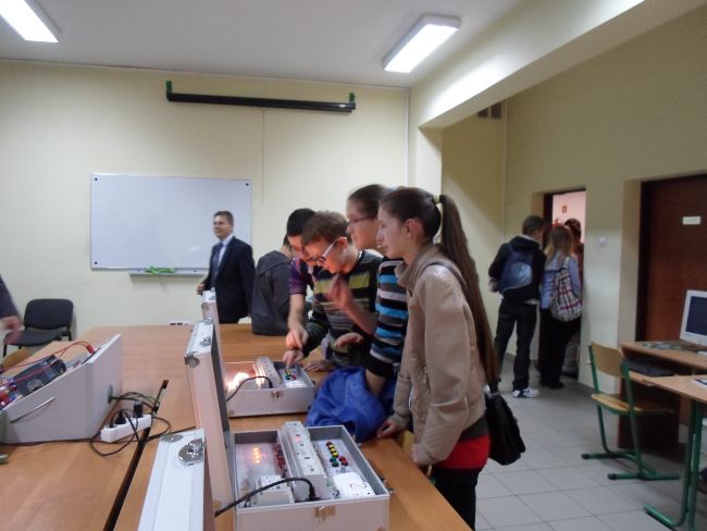Pokaz z ciekłym azotem prowadzony przez dr Witolda Przygodę wywarł na nich ogromne wrażenie. Dużym zainteresowaniem cieszyły się też pokazy doświadczeń z zakresu fizyki. Uczniowie odwiedzili również Laboratorium Automatyki i Robotyki, gdzie z wielki zaciekawieniem obejrzeli pokaz programowalnych robotów, pod okiem przewodnika naukowego sprawdzili na modelach sterowanie bramą, światłami skrzyżowania drogowego i funkcjonowanie inteligentnych instalacji w budynkach.