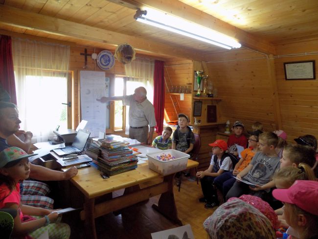 Po przybyciu do siedziby koła, uczniowie zostali zaproszeni do wysłuchania prelekcji przyrodniczej. Uważnie słuchali pana wędkarza, który czytał  i zaznajomił uczniów z ważnymi informacjami o ochronie wielu gatunków zwierząt oraz pokazywał ciekawe ilustracje z książek i albumów przyrodniczych. Potem panowie wędkarze zorganizowali konkurs wiedzy o przyrodzie na podstawie uzyskanych informacji. Następnie odbył się pokaz wędkowania przez doświadczonych wędkarzy nad rzeką Sowlinką. Niektórym uważnym i cierpliwym uczniom udało się złowić pierwszą w życiu rybę, co wywołało u nich niezmierną radość. Później wszyscy zgromadzili się przy wspólnym ognisku z panami wędkarzami, zajadając się pysznymi kiełbaskami. Na zakończenie tak wspaniałej imprezy uczniowie otrzymali dyplomy i książki przyrodnicze.