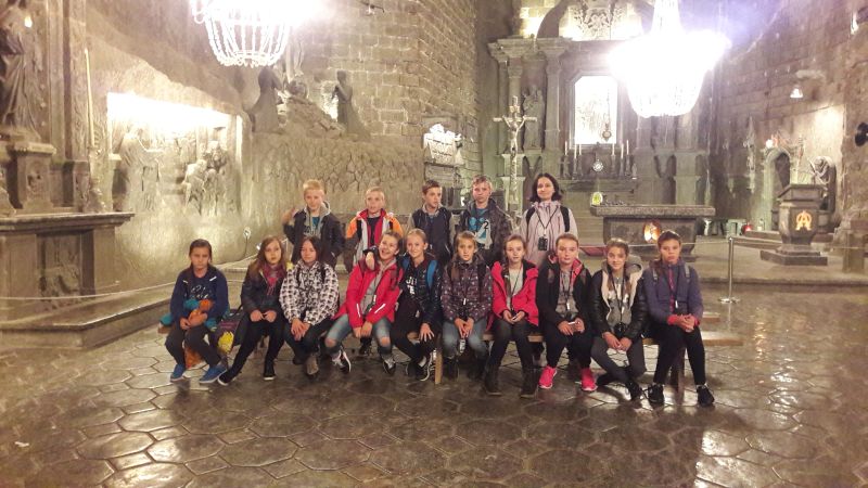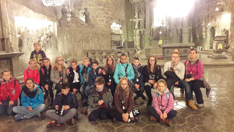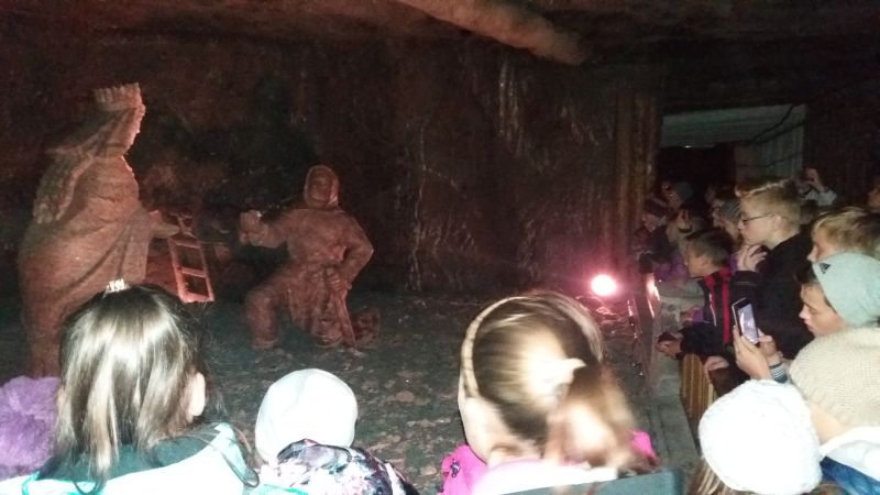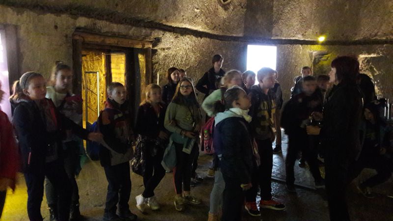 Z parkingu przed szkołą wyjechaliśmy około godziny 9.00. Po półtorej godzinie byliśmy już na miejscu. Przewodnicy podzielili nas na dwie grupy. Zwiedzanie bardzo nam się wszystkim podobało, bo zobaczyliśmy, jak dawniej pracowano w kopalni soli, jakich przyrządów do tego używano itp. Na koniec zwiedzania mogliśmy sobie kupić pamiątki związane z tym miejscem.