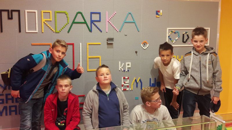 Po zwiedzaniu kopalni pojechaliśmy autobusem do galerii „Kazimierz”, by zobaczyć wystawę klocków. Przyjechaliśmy troszkę wcześniej, więc mieliśmy czas by pochodzić po sklepach, które były w galerii. Na wystawie widzieliśmy wiele pięknych, bardzo dużych i skomplikowanych dla nas budowli. Widzieliśmy na przykład ogromny samolot, człowieka, budynki, miasteczka, roboty zbudowane właśnie z klocków LEGO. Pod koniec mogliśmy się pobawić i sami coś zbudować. Po skończonym zwiedzaniu udaliśmy się do autobusu i wróciliśmy do Mordarki. Wszystkim podobała się wycieczka i z radością udaliśmy się do naszych domów.