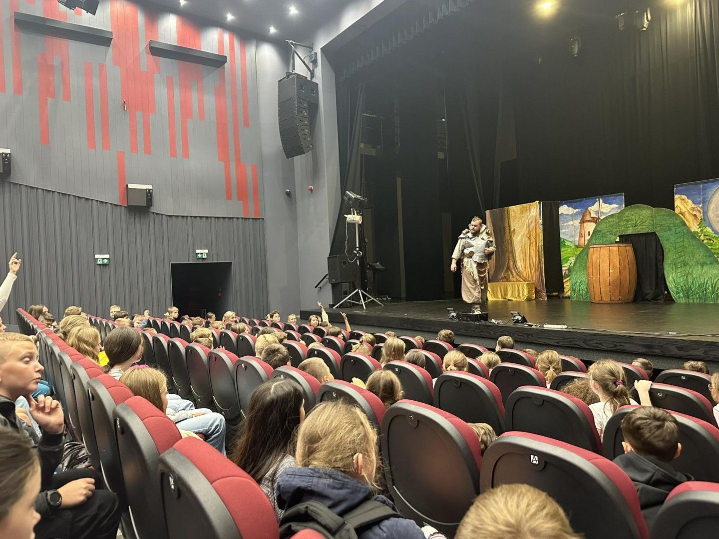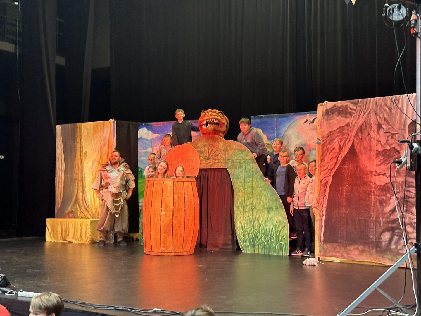 Uczniowie mieli okazję, by porównać książkę, film i spektakl teatralny. Podczas przedstawienia młodzież zachwycała się interesującą scenografią, barwnymi kreacjami oraz grą aktorską. Co ciekawe niektórzy aktorzy zostali wybrani spośród widowni. Krasnoludami, którzy wyruszali we wspólną wyprawę, byli nasi uczniowie. To właśnie interakcja bohaterów z publicznością najbardziej spodobała się naszym podopiecznym i pomogła w lepszym odbiorze dzieła. Ciekawa charakteryzacja postaci oraz efekty specjalne dopełniły całości. Później dla uczniów przygotowane zostały warsztaty, na których mogli oni zobaczyć scenografię z bliska, zadać pytania oraz zrobić pamiątkowe zdjęcia.