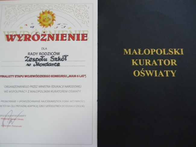 W dniu 4 marca 2013r. w sali widowiskowej Teatru Ludowego w Krakowie odbyła się Wojewódzka Gala II edycji Konkursu Ministra Edukacji Narodowej „Mam 6 lat”. Celem konkursu było upowszechnienie najciekawszych form aktywności umożliwiających przyjazną adaptację dzieci 6-letnich do edukacji szkolnej. W gronie finalistów etapu wojewódzkiego znalazła się jedyna z gminy i miasta Limanowa Rada Rodziców naszej szkoły. Wyróżnienie  z rąk pana Aleksandra Palczewskiego Małopolskiego Kuratora Oświaty odebrali: zastępca przewodniczącej Rady Rodziców Pani Dorota Jasica, wychowawca oddziału przedszkolnego mgr Barbara Młynarczyk oraz wychowanek oddziału przedszkolnego  Łukasz Jasica.