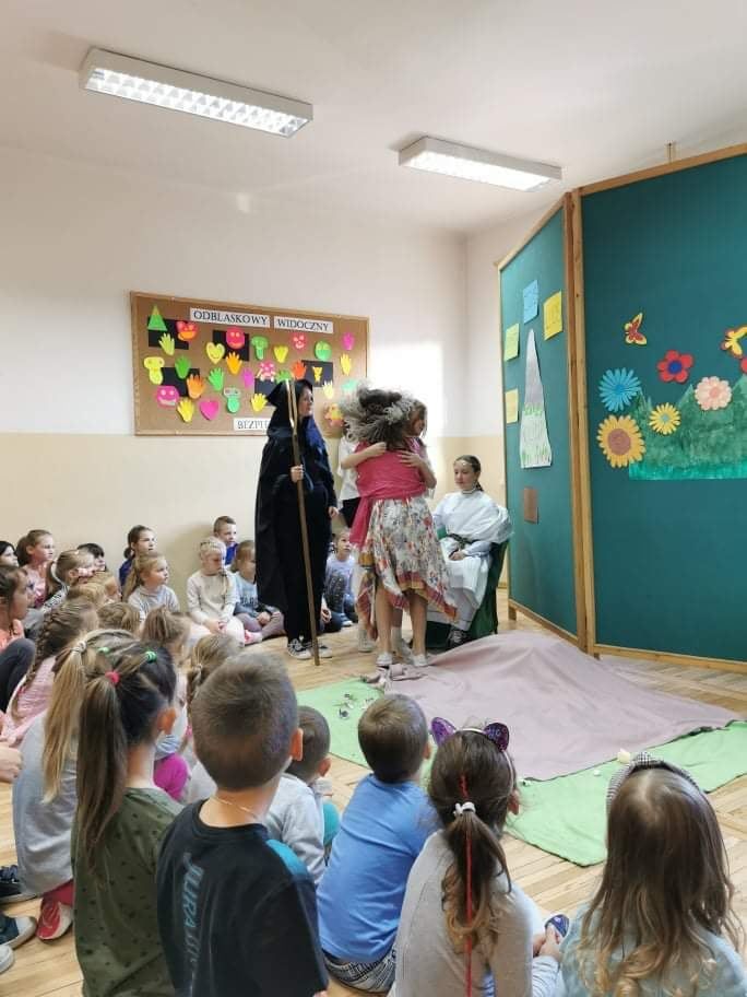 Klasa Va wystawiła sztukę w dniu 14 października dla społeczności szkolnej z okazji Dnia Edukacji Narodowej. Występ dla uczniów i Nauczycieli z okazji ich święta przyniósł „aktorom” ogromną radość. Czuli się świetnie, odgrywając swoje role, z zachwytem słuchali braw i słów uznania ze strony wielu nauczycieli.