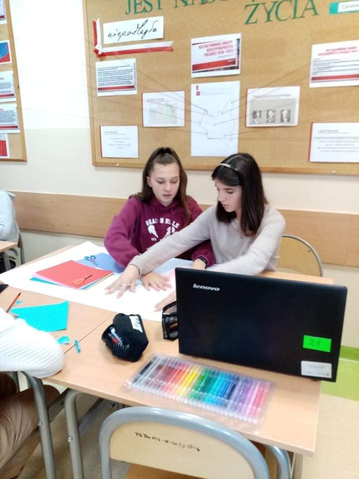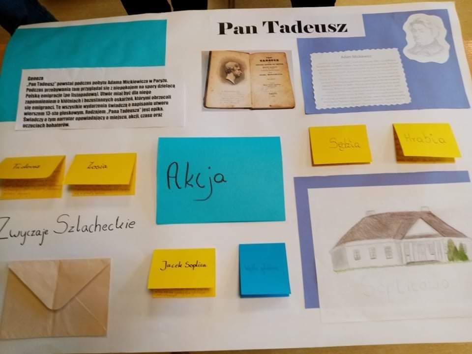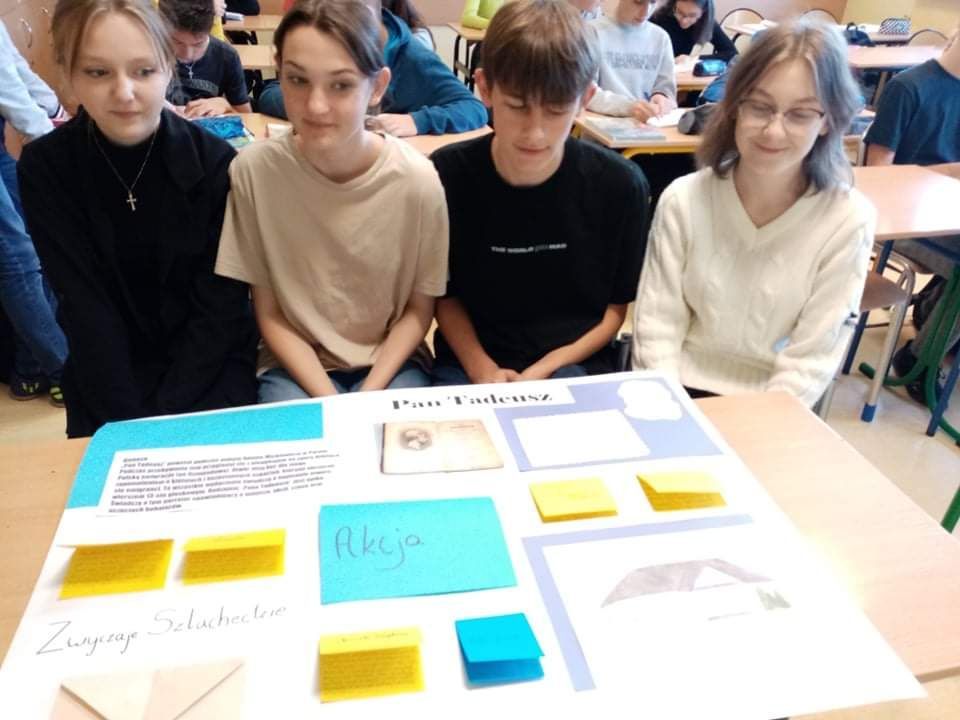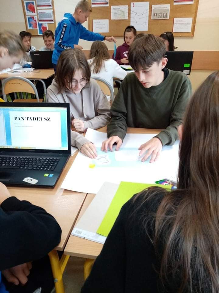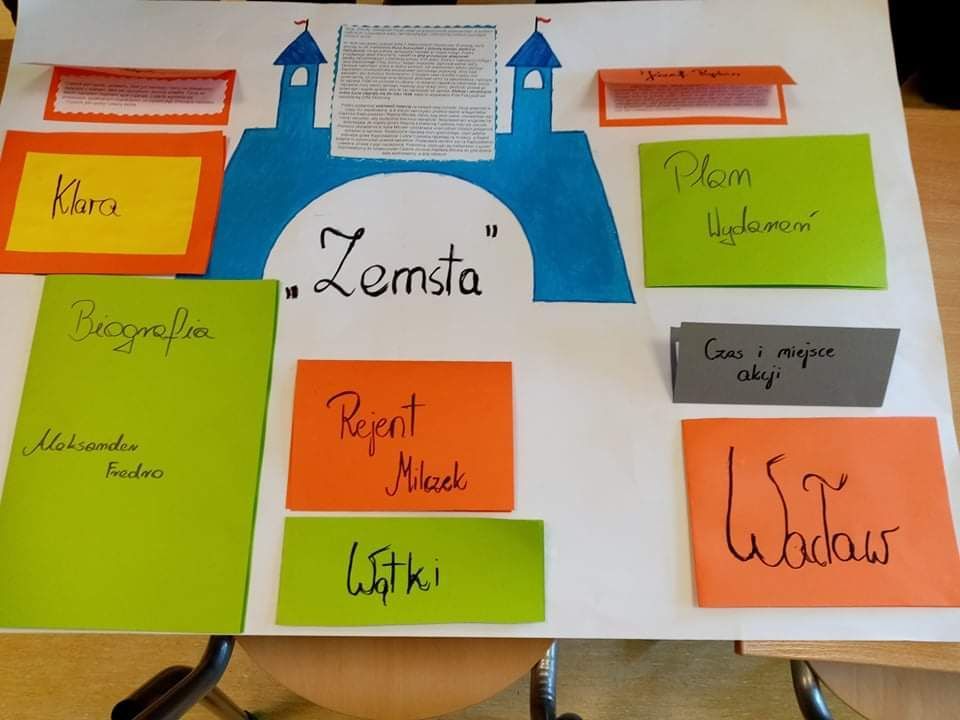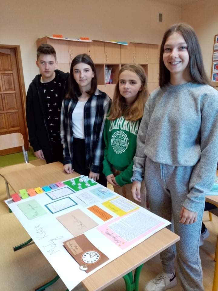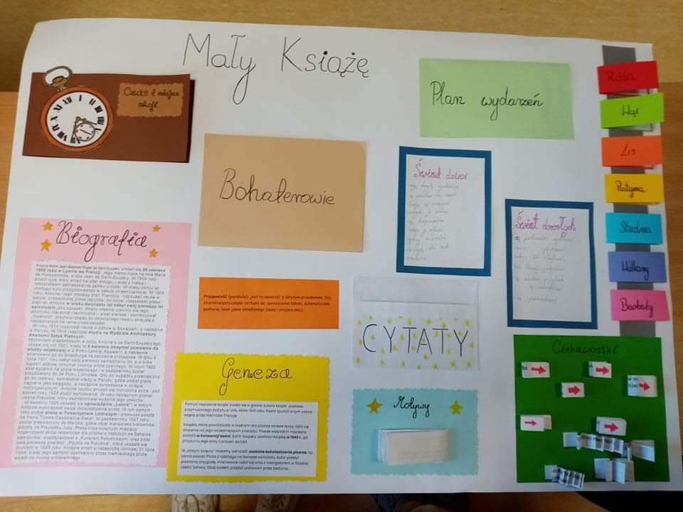 Klasa 8a wykorzystując zajęcia wspierające, przygotowała ciekawą pomoc dydaktyczną, która ma pomóc w nauce do egzaminu ósmoklasisty. Uczniowie pracowali w kilkuosobowych grupach, wykorzystując Internet oraz metodę STEAM. Uczniowie w trakcie 3 lekcji wykonali bardzo wartościowe lapbooki do lektur: „Mały Książę”, ,,Pan Tadeusz”, „Zemsta” i „Balladyna”.