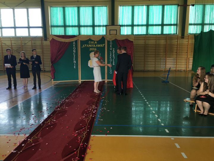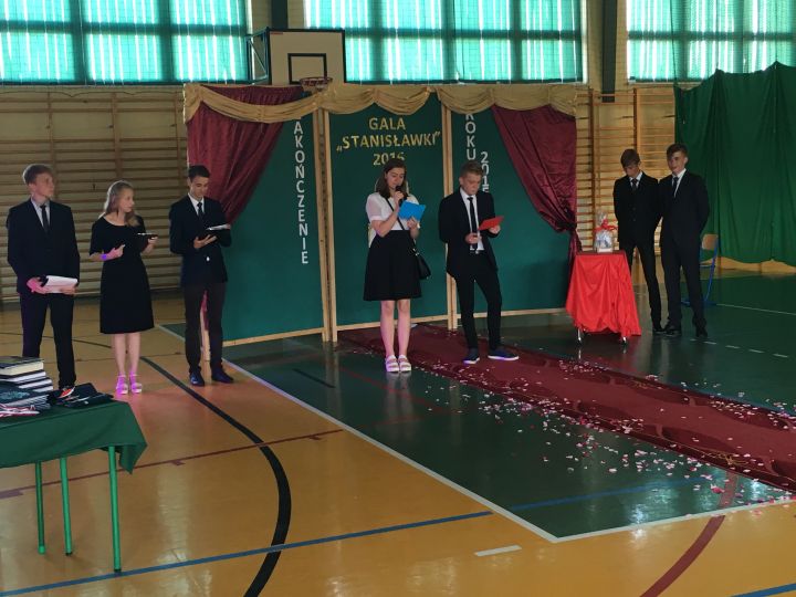 24 czerwca 2016 nadszedł oczekiwany przez wszystkich dzień zakończenia roku szkolnego. Z tej okazji odbyły się w szkole uroczyste akademie, w czasie których absolwenci pożegnali nauczycieli, kolegów i pracowników szkoły. Był to dzień szczególnie ważny dla klas trzecich gimnazjum, którzy opuszczali mury naszej szkoły. Tegoroczna akademia długo zostanie w pamięci wszystkich, po raz pierwszy bowiem wręczone zostały STANISŁAWKI - statuetki wywodzące się od imienia naszego patrona Stanisława Wyspiańskiego, będące nagrodą i podziękowaniem dla wszystkich uczących i pracujących w szkole za trzyletnią pracę. Po gali rozdania STANISŁAWKÓW nastąpiło uroczyste rozdanie świadectw oraz nagród i wyróżnień. Dyrektor szkoły mgr Paweł Ciuła gratulował uczniom ukończenia szkoły i życzył powodzenia w kolejnym etapie edukacji. Gratulacje i podziękowania otrzymali również rodzice.