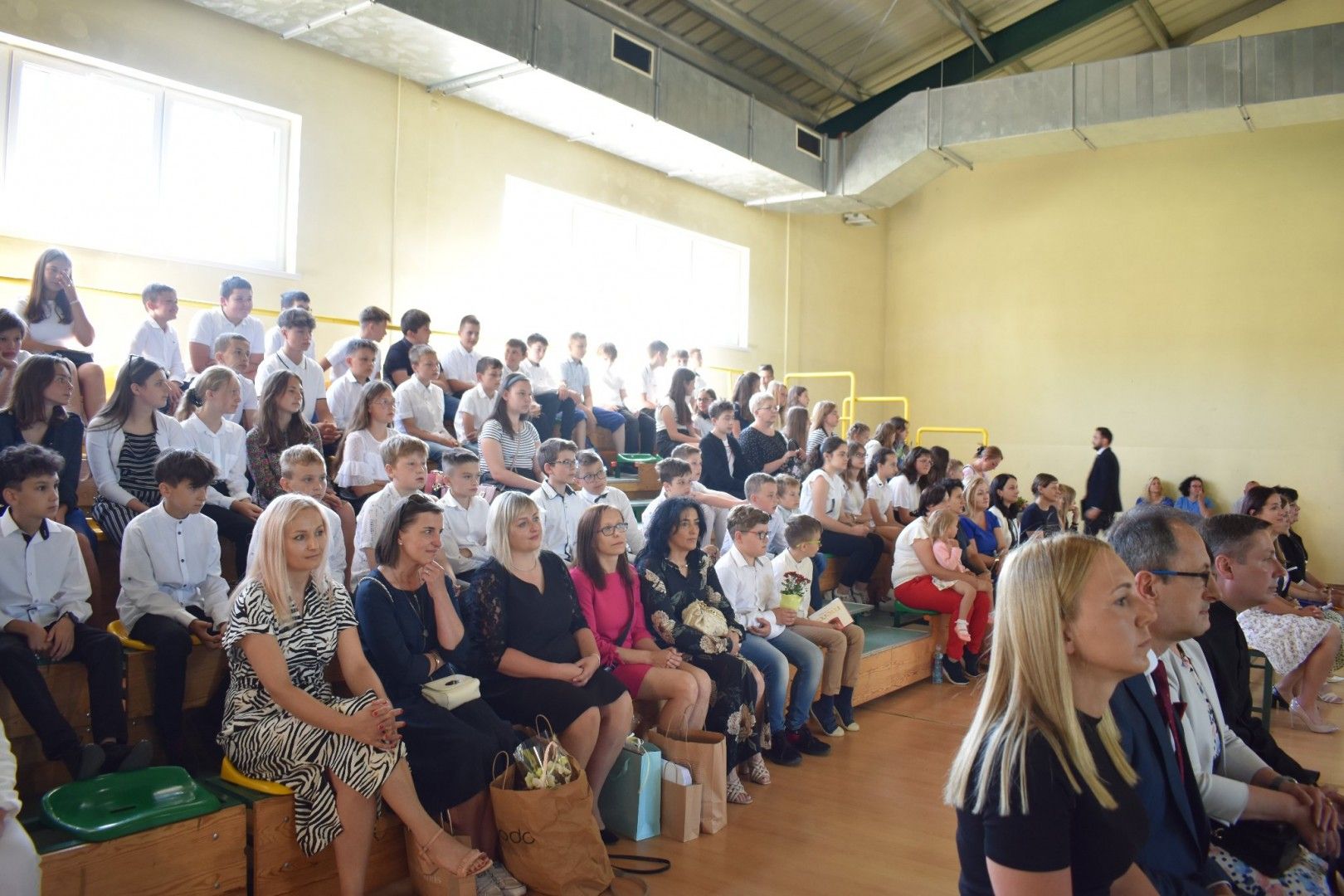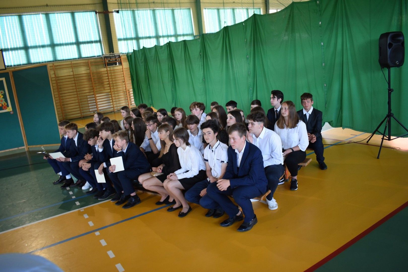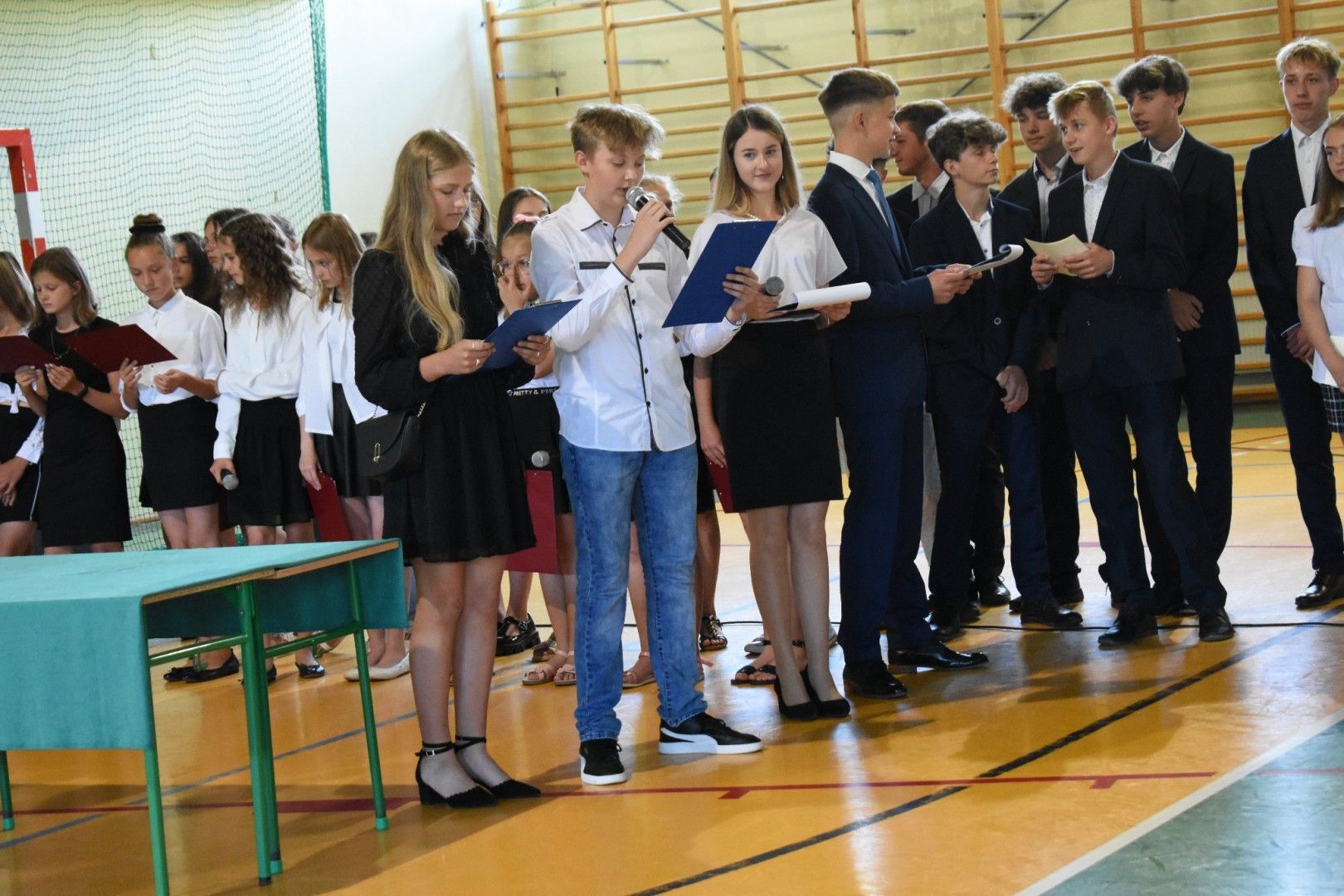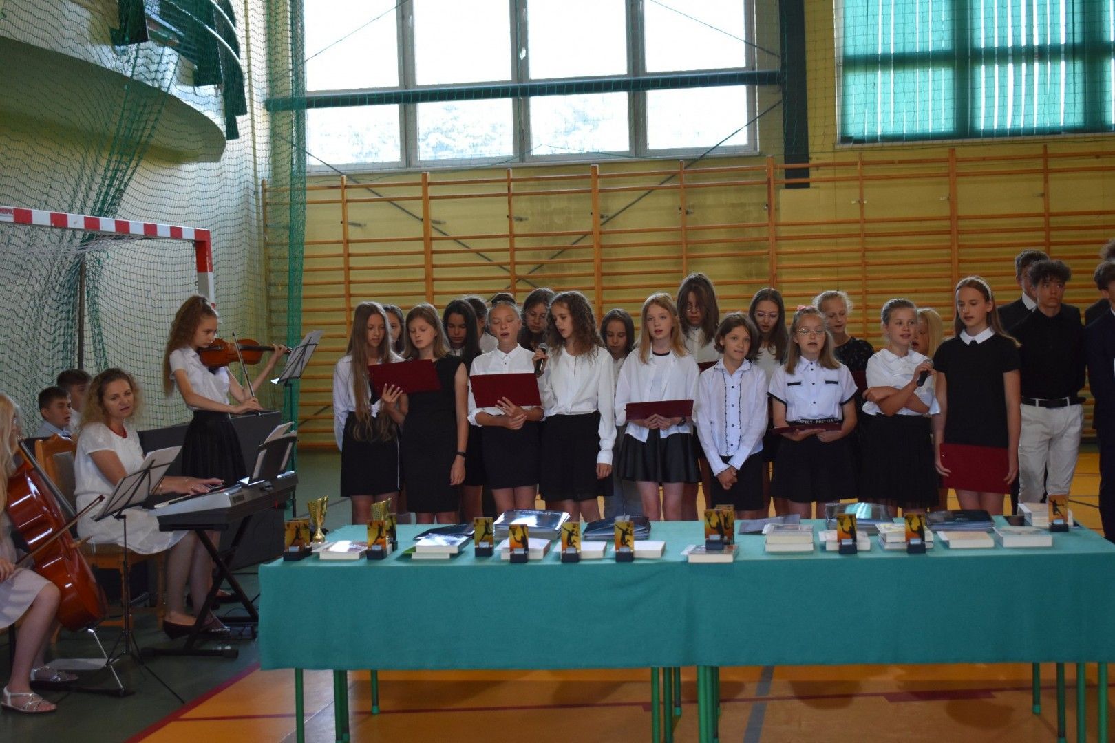 Dyrektor szkoły wraz z wychowawcami wręczyli absolwentom świadectwa, świadectwa z wyróżnieniem, nagrody za reprezentowanie szkoły w konkursach i zawodach sportowych, listy gratulacyjne i podziękowania dla rodziców. Z ust ósmoklasistów płynęły słowa wdzięczności i podziękowania za trud wychowania, kształcenia i nauczania, za sukcesy, za opiekę na każdym kroku, za cierpliwość, wyrozumiałość. Szczególnie wzruszającym momentem było pożegnanie pani Emilii Kolawy, naszej pani bibliotekarki, która odeszła na emeryturę. Po akademii uczniowie spotkali się na krótką chwilę z wychowawcami i wreszcie udali się na zasłużony wypoczynek.