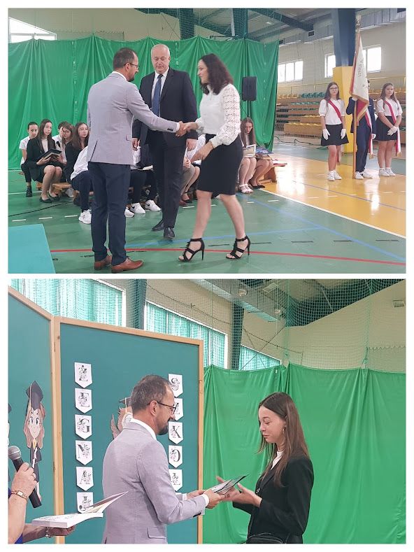 Pamiętajcie o słowach naszego patrona: „Idziesz przez świat i światu dajesz kształt przez Twoje czyny”. Bądźcie wytrwali, ambitni, odważni. Śmiało realizujcie swoje marzenia. Nigdy nie traćcie nadziei ani wiary we własne siły i umiejętności. Pamiętajcie, aby w życiu oprócz nabytej wiedzy kierować się sercem. Szanujcie przyjaciół i wspomnienia. Zapiszcie chlubnie nową kartę Waszej historii.