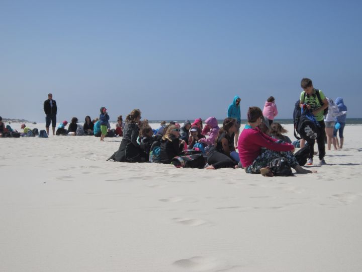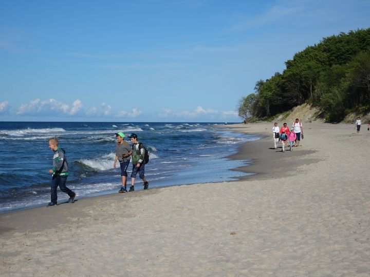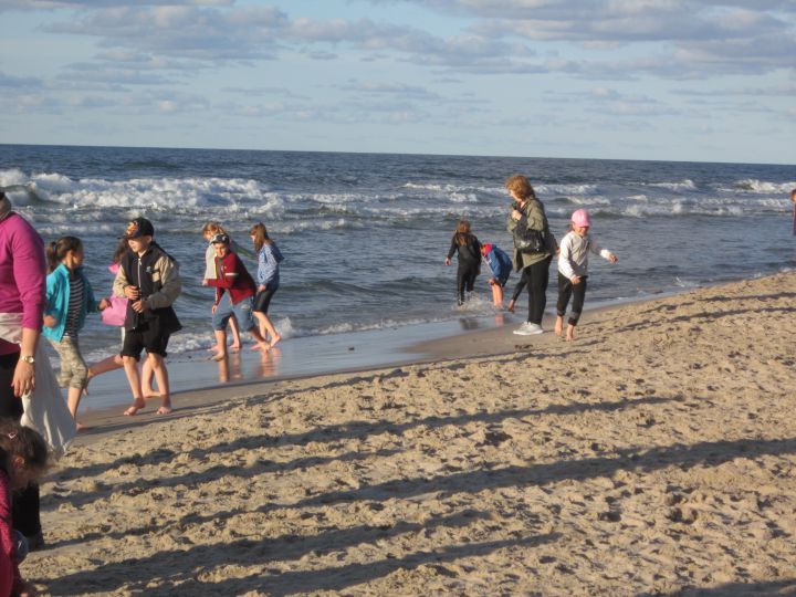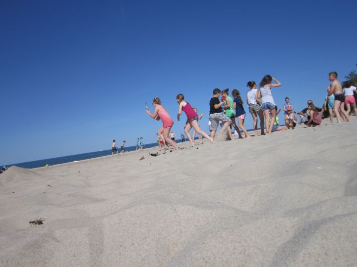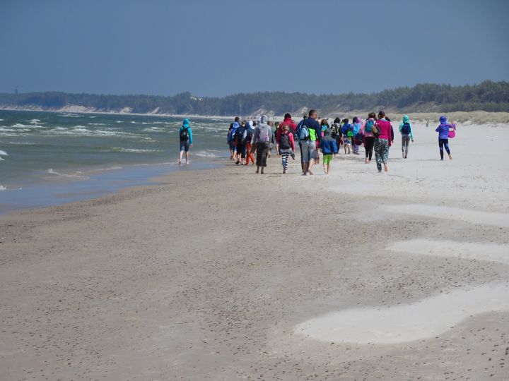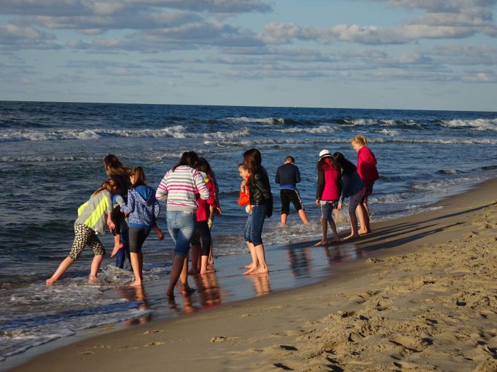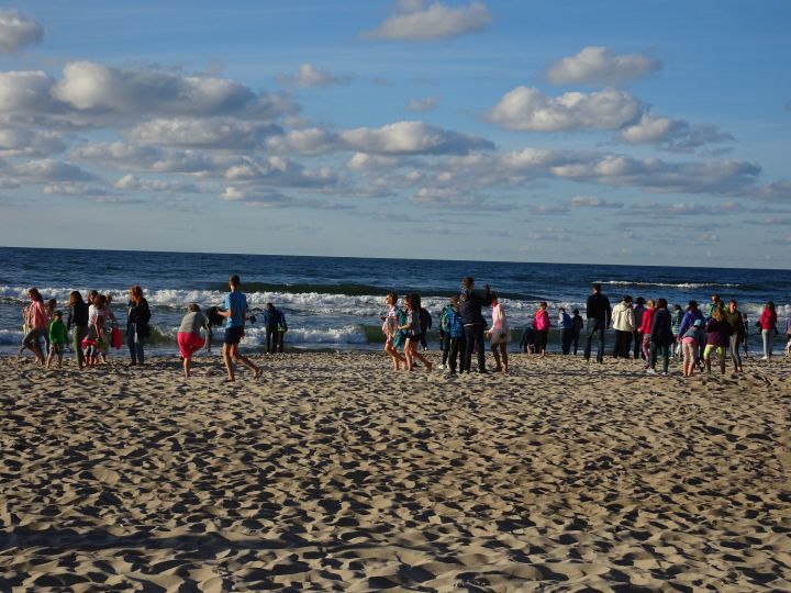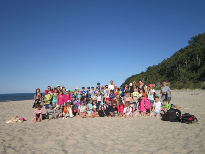 Ważnym punktem programu Zielonej Szkoły było plażowanie i zanurzenie się choćby na chwilę w morzu. Dzięki sprzyjającej pogodzie dwa popołudnia dzieci i młodzież spędzili na plaży bawiąc się w piasku, tworząc rzeźby, rysunki, kompozycje ze znalezionych przedmiotów, grając w piłkę, odpoczywając i korzystając z nadmorskiego klimatu. Uczniowie w czasie pobytu w ośrodku w Jastrzębiej Górze uczestniczyli w dyskotece, spotkaniu z gawędziarzem kaszubskim, ognisku. Mieli też każdego dnia okazję wykazać się zdobytą w czasie wyjazdu wiedzą, np. rozwiązując test o Słowińskim Parku Narodowym czy tworząc kompozycje ze znalezionych przedmiotów w kształcie figur geometrycznych. Wieczorami w pokojach wspólnie śpiewali, pisali dziennik podróży i kartki pocztowe do rodziny, rysowali „swoją zieloną szkołę”. Niecodzienne lekcje nie sprawiały trudności, uczniowie solidnie i z zaangażowaniem wykonywali powierzone zadania. Przed snem słuchali głośnego czytania w wykonaniu opiekunów. Oczywiście nie zabrakło wspólnych rozmów i dzielenia się wrażeniami ze współlokatorami i rodzicami nawet w czasie ciszy nocnej.