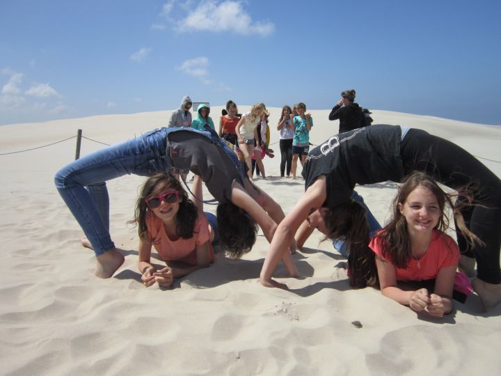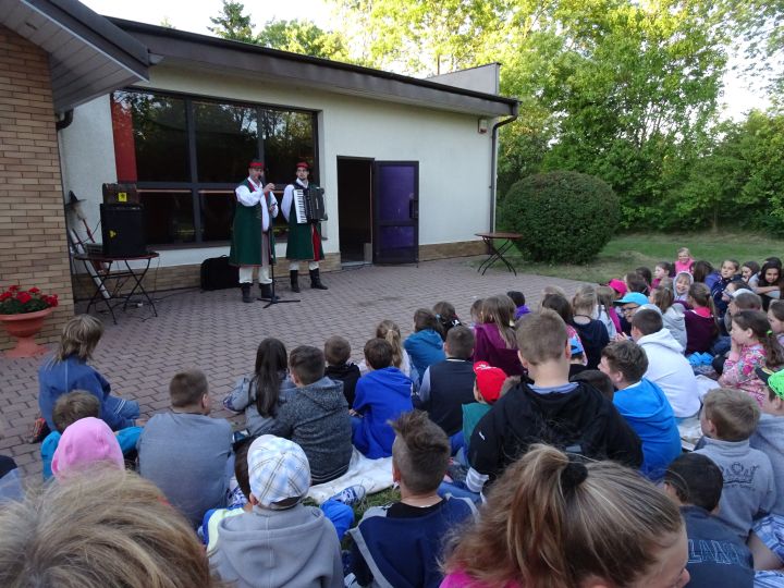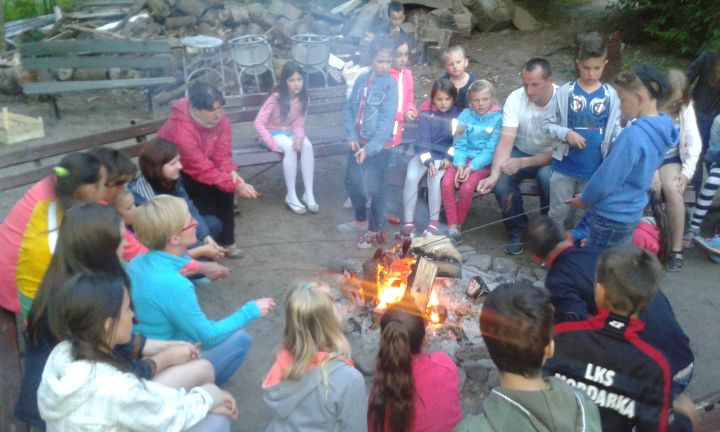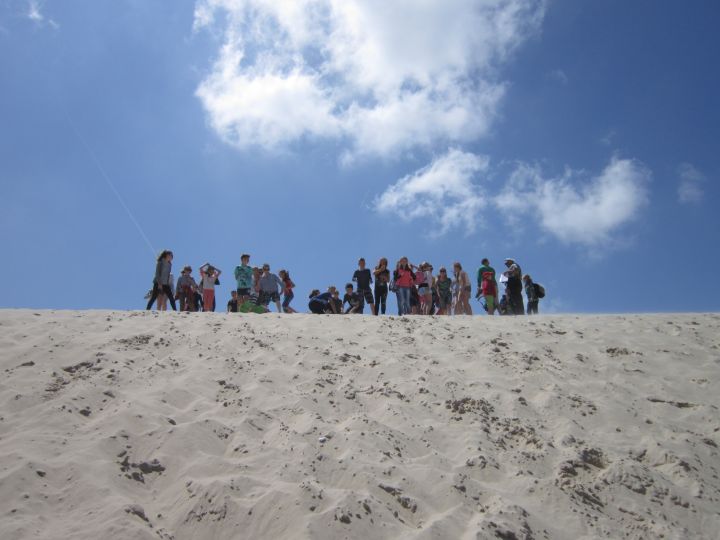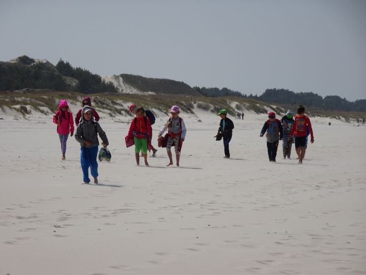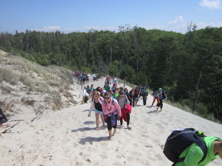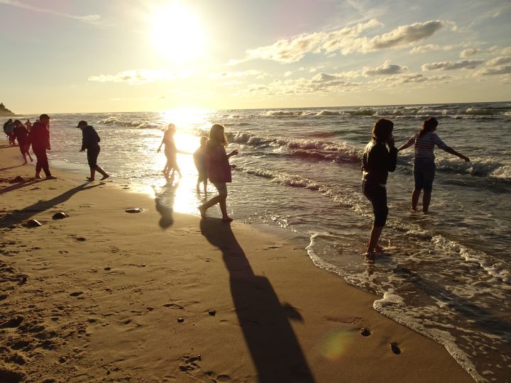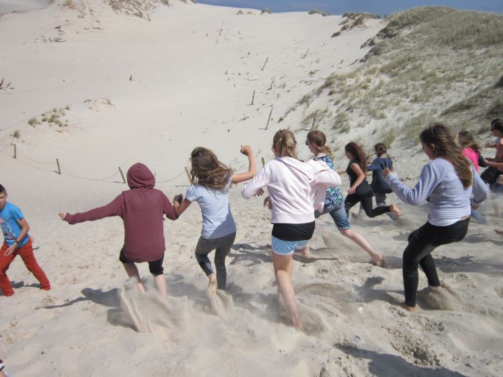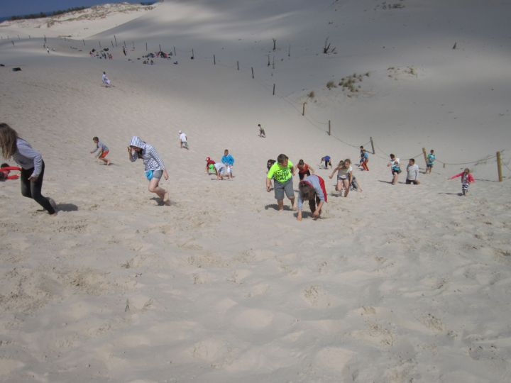 Ważnym punktem programu Zielonej Szkoły było plażowanie i zanurzenie się choćby na chwilę w morzu. Dzięki sprzyjającej pogodzie dwa popołudnia dzieci i młodzież spędzili na plaży bawiąc się w piasku, tworząc rzeźby, rysunki, kompozycje ze znalezionych przedmiotów, grając w piłkę, odpoczywając i korzystając z nadmorskiego klimatu. Uczniowie w czasie pobytu w ośrodku w Jastrzębiej Górze uczestniczyli w dyskotece, spotkaniu z gawędziarzem kaszubskim, ognisku. Mieli też każdego dnia okazję wykazać się zdobytą w czasie wyjazdu wiedzą, np. rozwiązując test o Słowińskim Parku Narodowym czy tworząc kompozycje ze znalezionych przedmiotów w kształcie figur geometrycznych. Wieczorami w pokojach wspólnie śpiewali, pisali dziennik podróży i kartki pocztowe do rodziny, rysowali „swoją zieloną szkołę”. Niecodzienne lekcje nie sprawiały trudności, uczniowie solidnie i z zaangażowaniem wykonywali powierzone zadania. Przed snem słuchali głośnego czytania w wykonaniu opiekunów. Oczywiście nie zabrakło wspólnych rozmów i dzielenia się wrażeniami ze współlokatorami i rodzicami nawet w czasie ciszy nocnej.