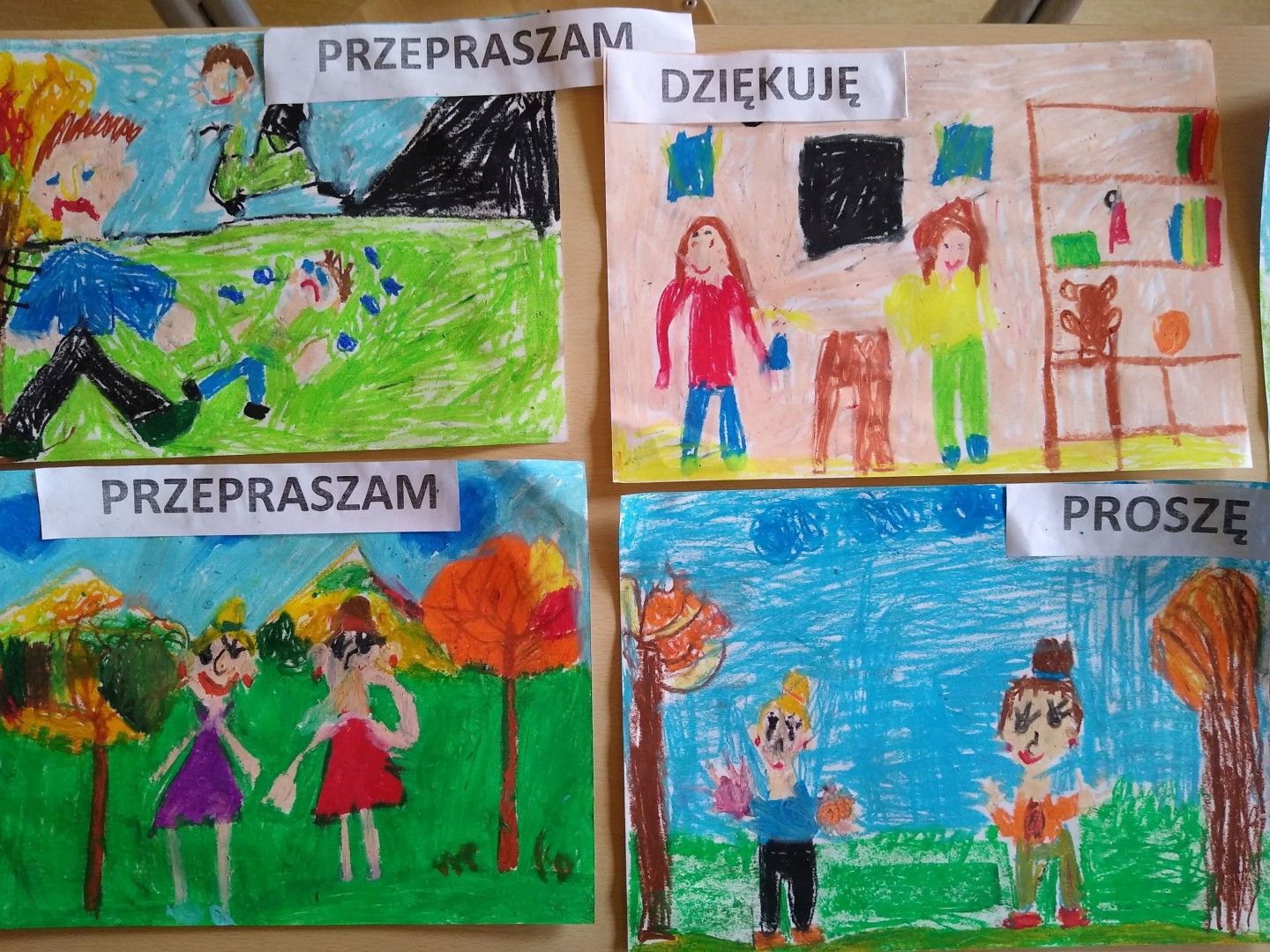 W październiku utrwalaliśmy znajomość oraz zachęcaliśmy do stosowania w życiu codziennym magicznych słów: dzień dobry, do widzenia, proszę, dziękuję i przepraszam. Dzieci w ramach realizowanej tematyki uczyły się piosenek, wykonywały prace plastyczne, przedstawiały scenki. Został również zorganizowany konkurs dla dzieci i uczniów klas 0-3 pt. „Znam magiczne słowa”. Informacje o zabawie konkursowej zostały zamieszczone na profilu szkoły na stronie Facebook. Konkurs polegał na odgadnięciu zagadek słownych i przesłaniu rozwiązań na podany adres e-mailowy. Wylosowano 3 zwycięzców, którzy otrzymali nagrody i dyplomy. Pozostali uczestnicy otrzymali dyplomy oraz upominki.