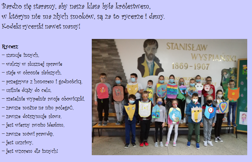 W każdej klasie rozmawiano na temat zasad odpowiedniego zachowania się w klasie, szkole, stworzono klasowe kodeksy. Uczniowie klas 1-3 rozmawiali na temat netykiety, czyli zasad odpowiedniego zachowania się, kulturalnej komunikacji poprzez Internet.