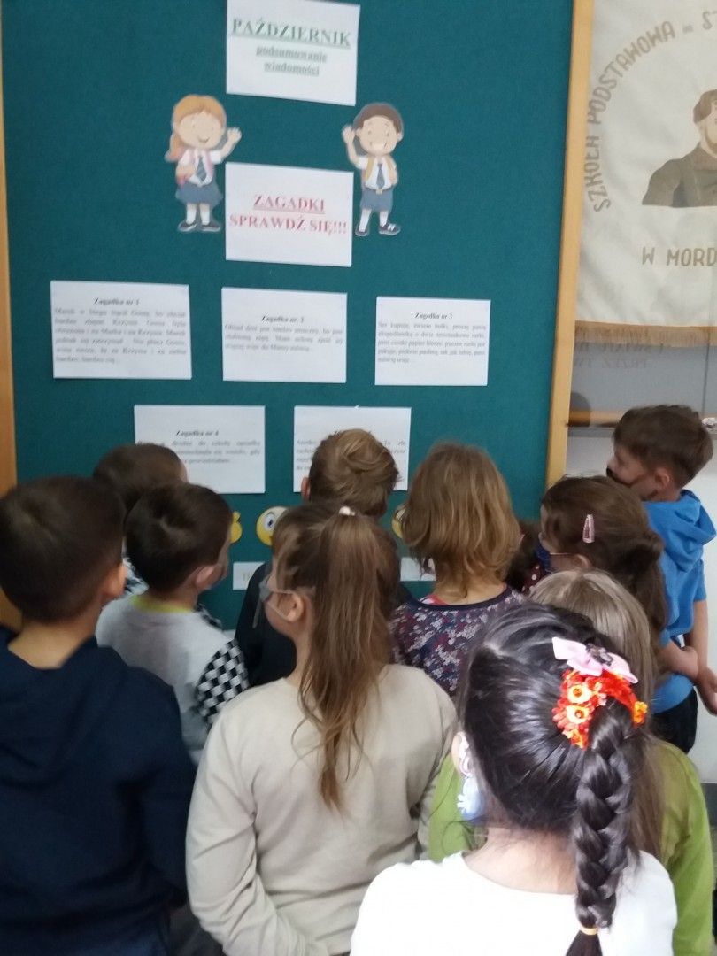Tablice na korytarzu szkolnym prezentowały informacje dotyczące innowacji. Pod koniec września i października uczniowie mogli podsumować informacje, sprawdzić swoje wiadomości, dzięki mini quizom zamieszczonym na tablicach. Listopad przynosi nam nowe wyzwania i ważne tematy do omówienia. Kolejne podsumowanie i fotorelacja już wkrótce.